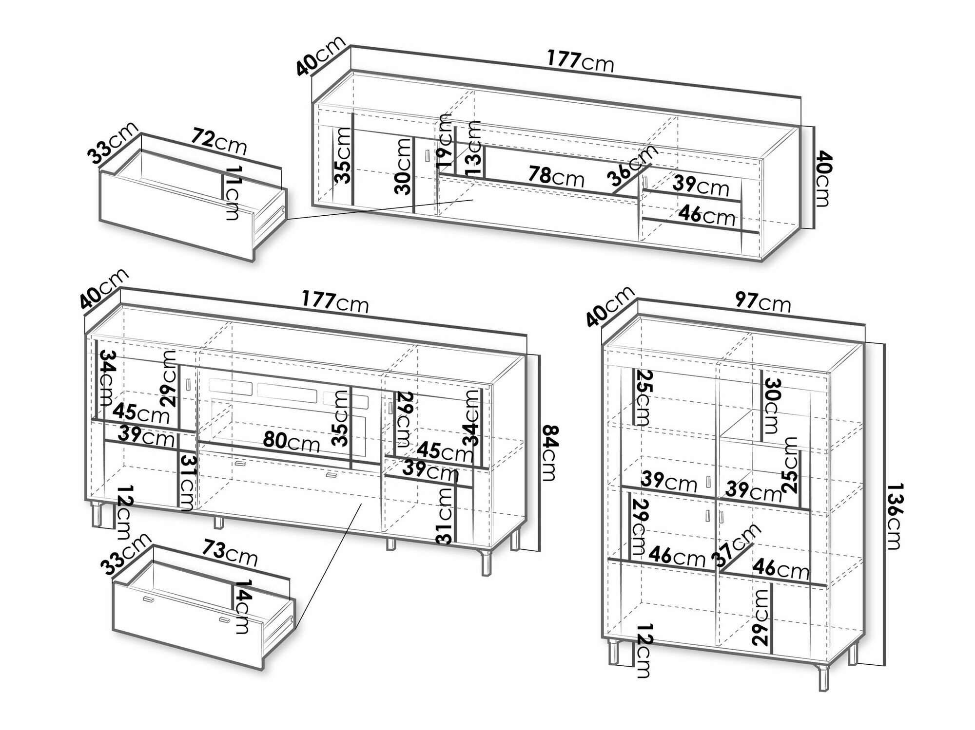 52 x 177 x 40 cm