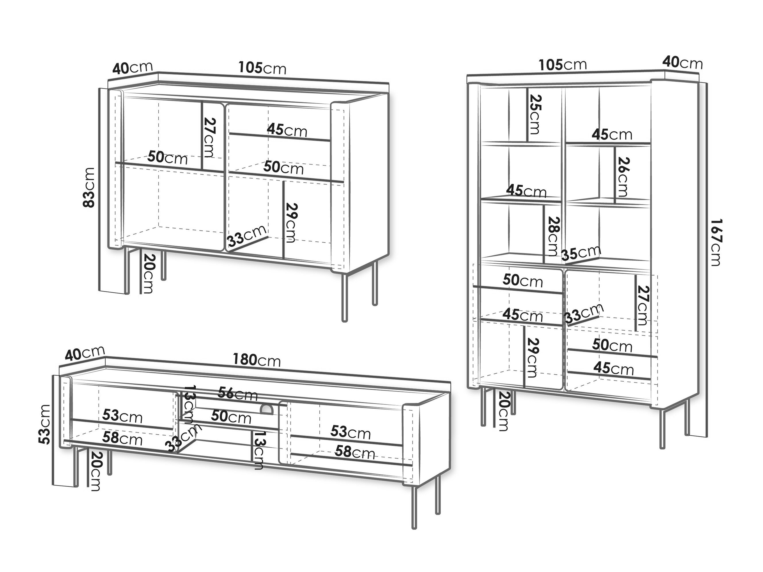 53 x 180 x 40 cm
