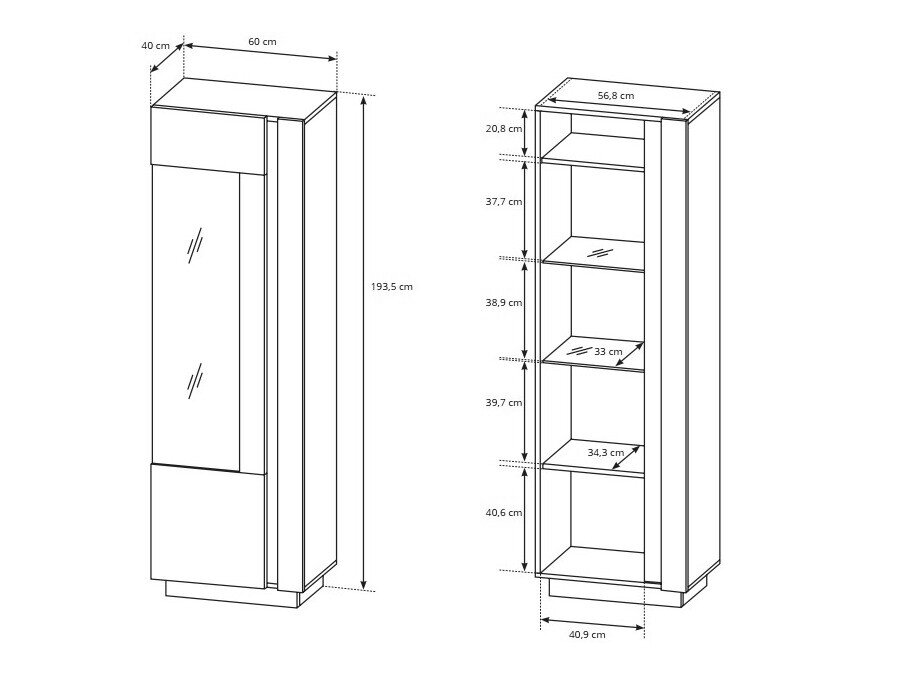 193.5 x 60 x 40; 193.5 x 96.5 x 54 cm
