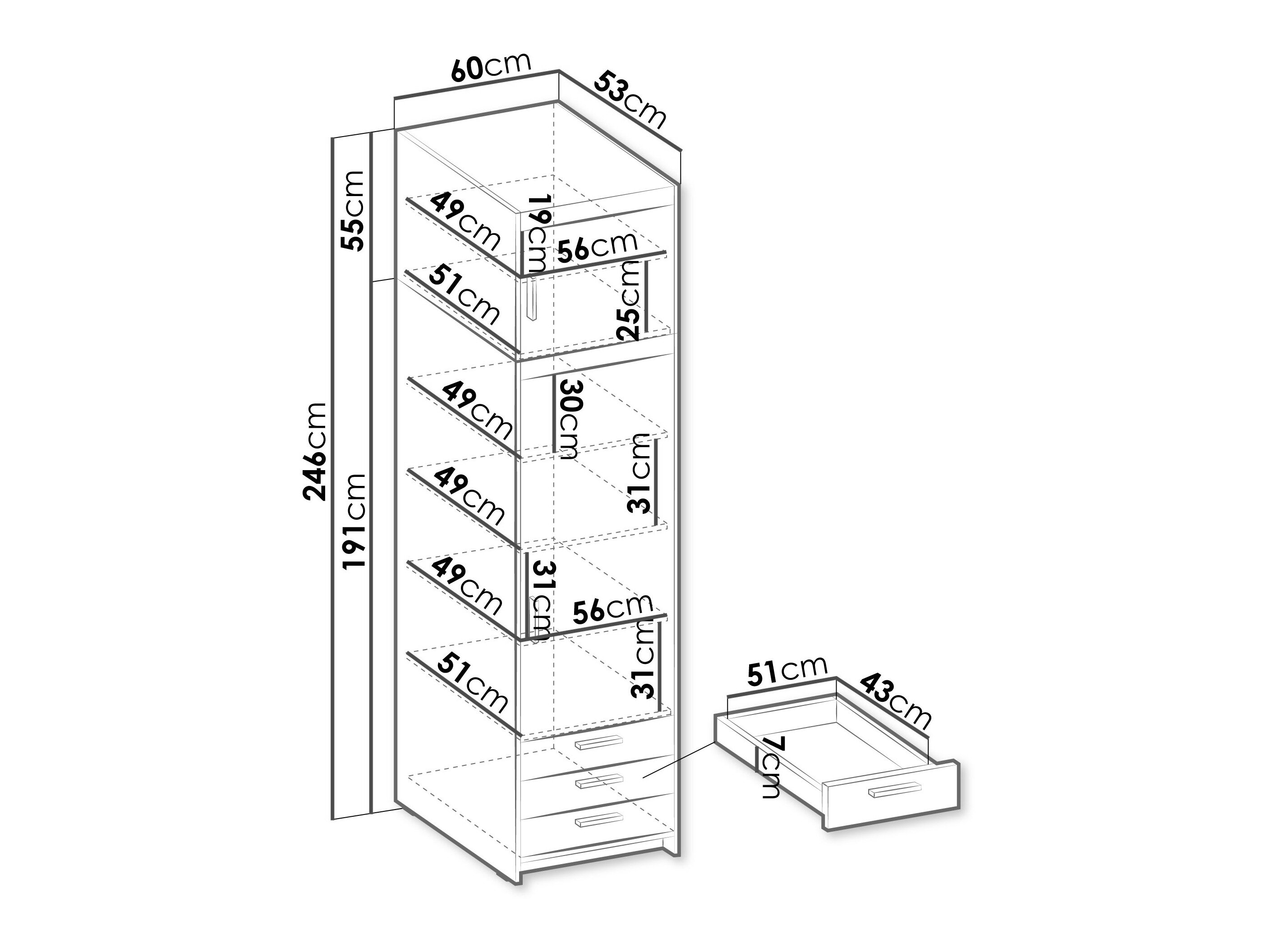 246 cm  60 cm  53 cm