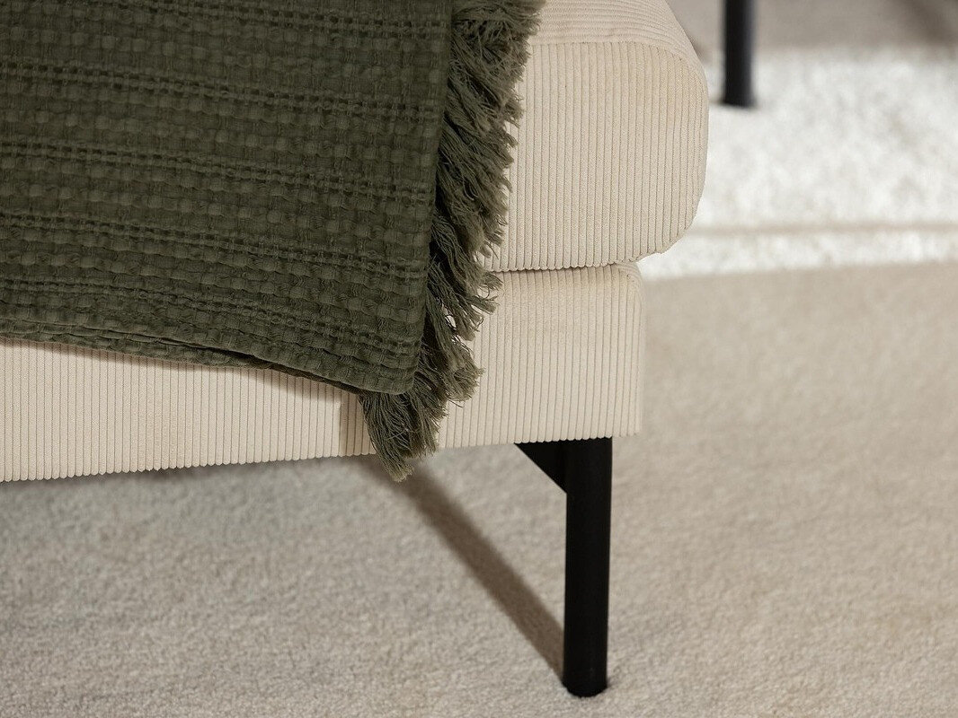 En delikat stofstruktur bestående af hævede striber giver møblerne et karakteristisk udseende. Takket være sin bløde overflade kan stoffet ændre nuance afhængigt af belysningen. Dette stof er et fremragende valg til både moderne og minimalistiske interiører. For at bevare stoffets tilstand anbefales det kun at rengøre overfladen med milde rengøringsprodukter, der er specielt beregnet til polstring.