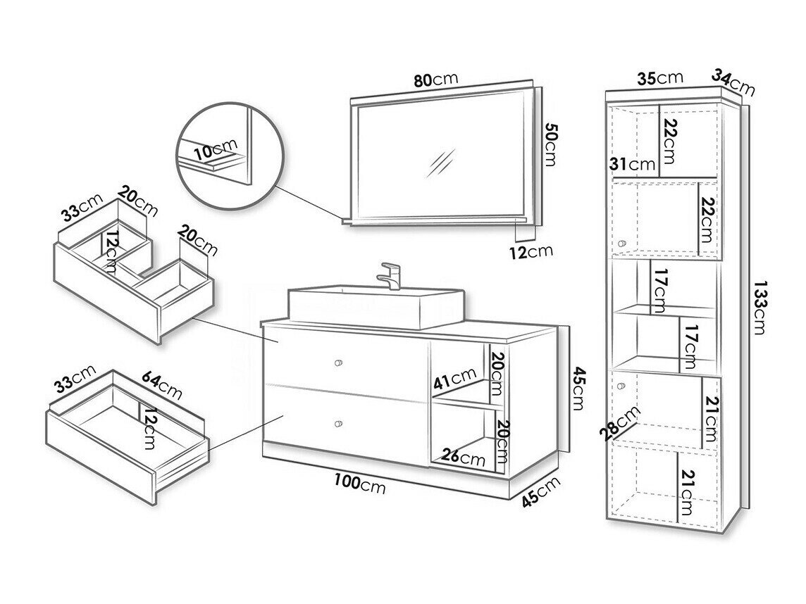 Håndvask skab dimensioner: