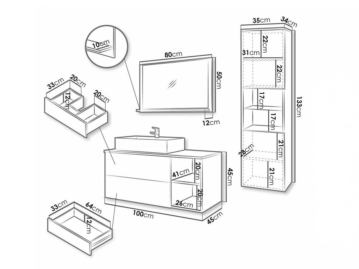 Håndvask skab dimensioner: