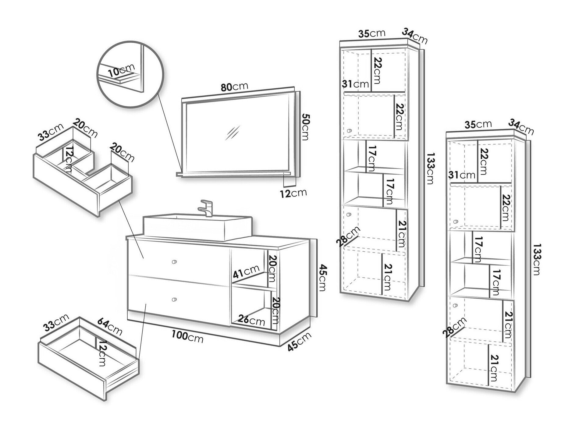 Håndvask skab dimensioner: