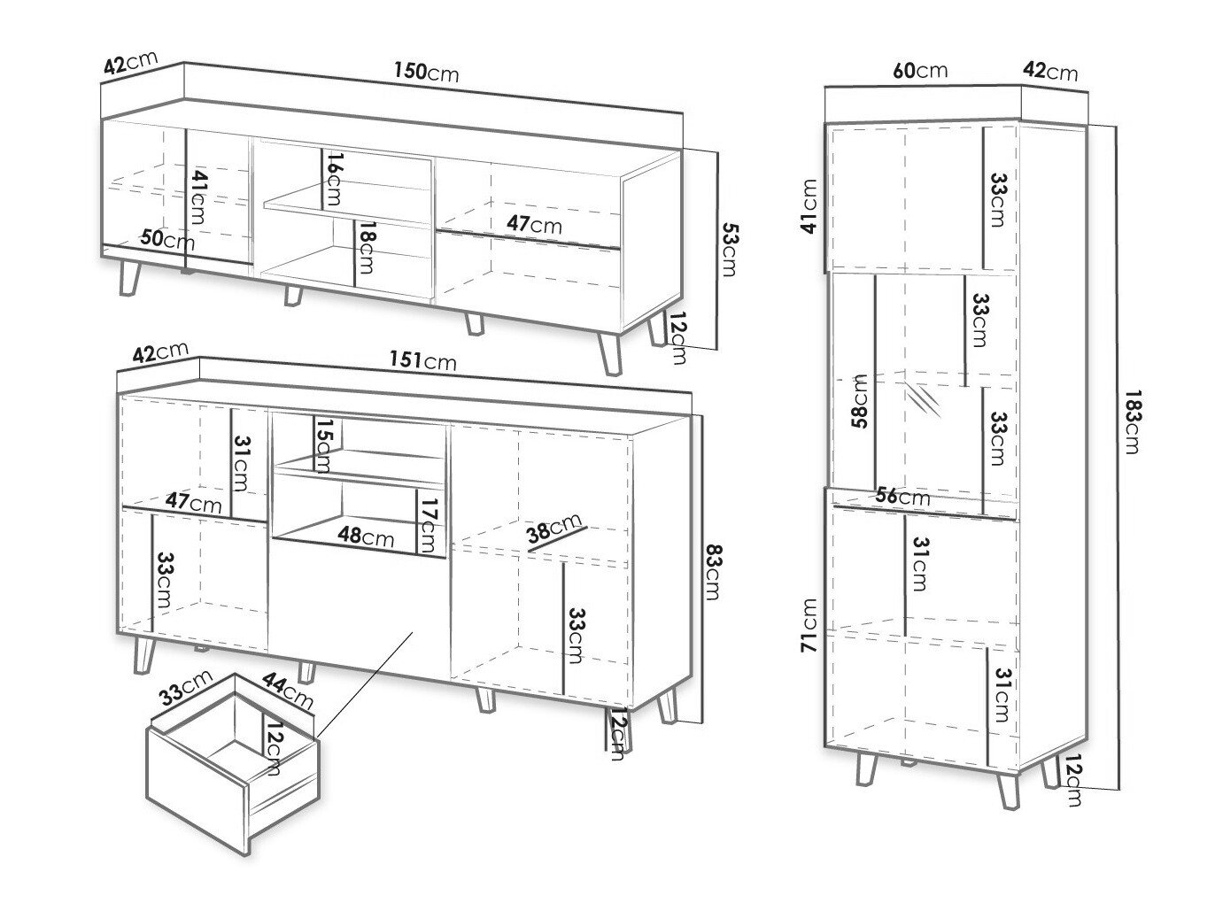 83 x 151 x 42 cm