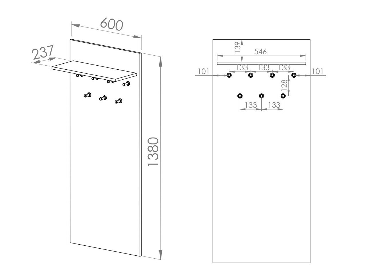 - Væghængt knagerække