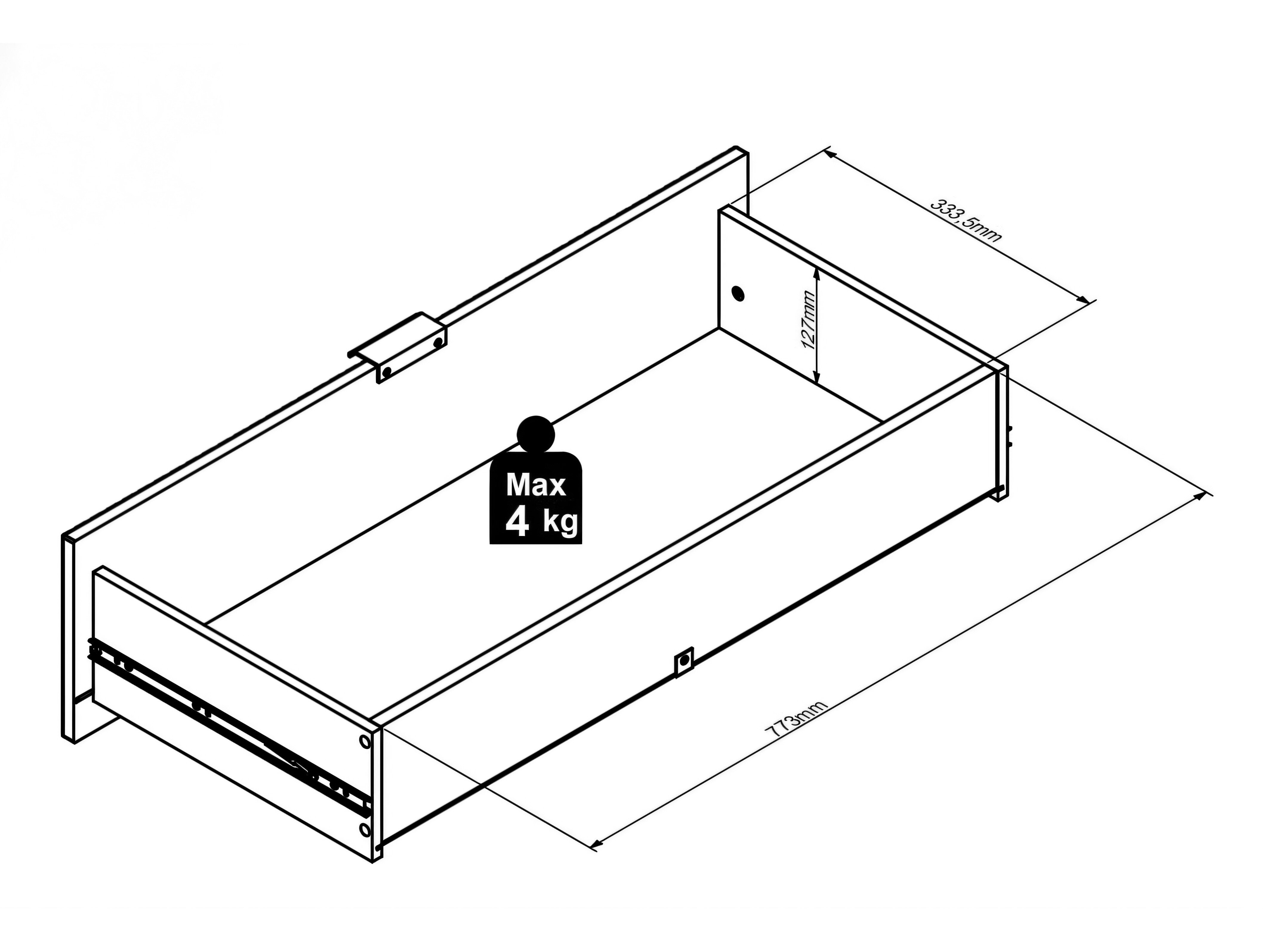 Maksimal vægtkapacitet for skuffen: