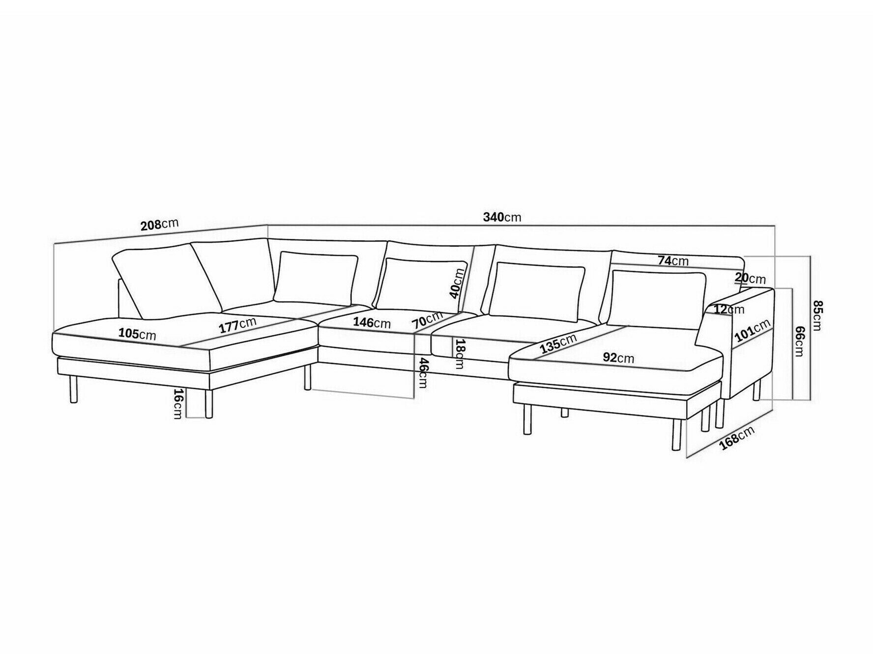 85 cm  340 cm  208 cm