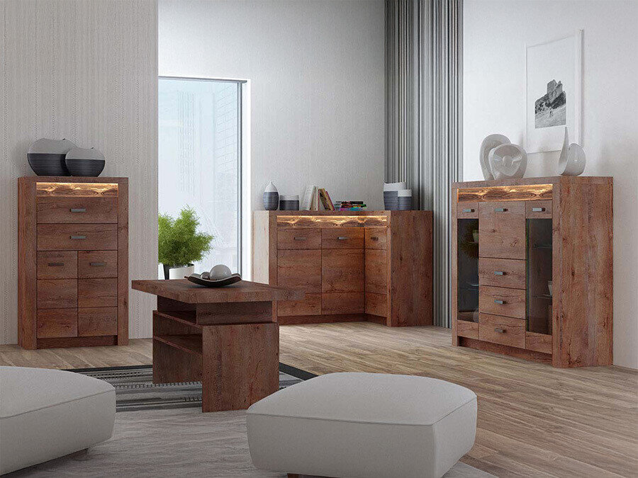 Når man planlægger indretningen af sit hjem, søger man i stigende grad løsninger, der kombinerer daglig komfort med visuel tiltrækningskraft. Møbler bliver en integreret del af disse rum – de skal være funktionelle, gennemtænkte og kunne tilpasses forskellige behov. Denne møbelkollektion er udtryk for netop denne tilgang. Overfladen med trælook tilfører interiøret varme og diskret elegance, mens gennemtænkte designvalg er med til at skabe et sammenhængende opholdsrum. Funktionalitet er kernen i kollektionen: generøse opbevaringsområder hjælper med at opretholde orden, og muligheden for at integrere LED-belysning tilføjer både bekvemmelighed og en hyggelig atmosfære. Disse møbler passer nemt ind i en række boligindretninger og passer smukt sammen med interiører i bløde farver.