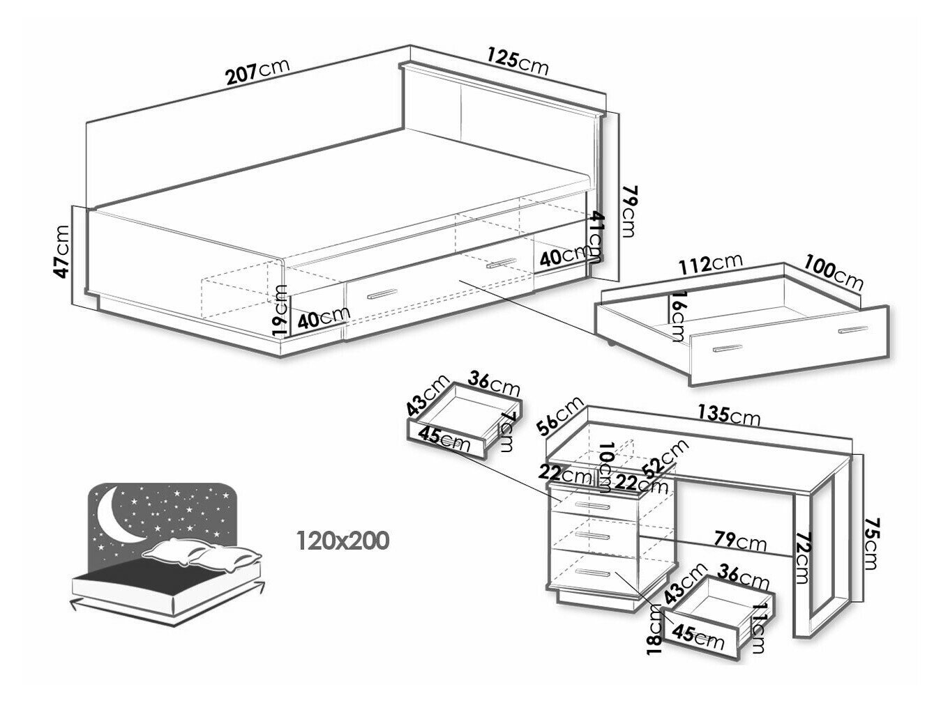 - 120 x 200 cm