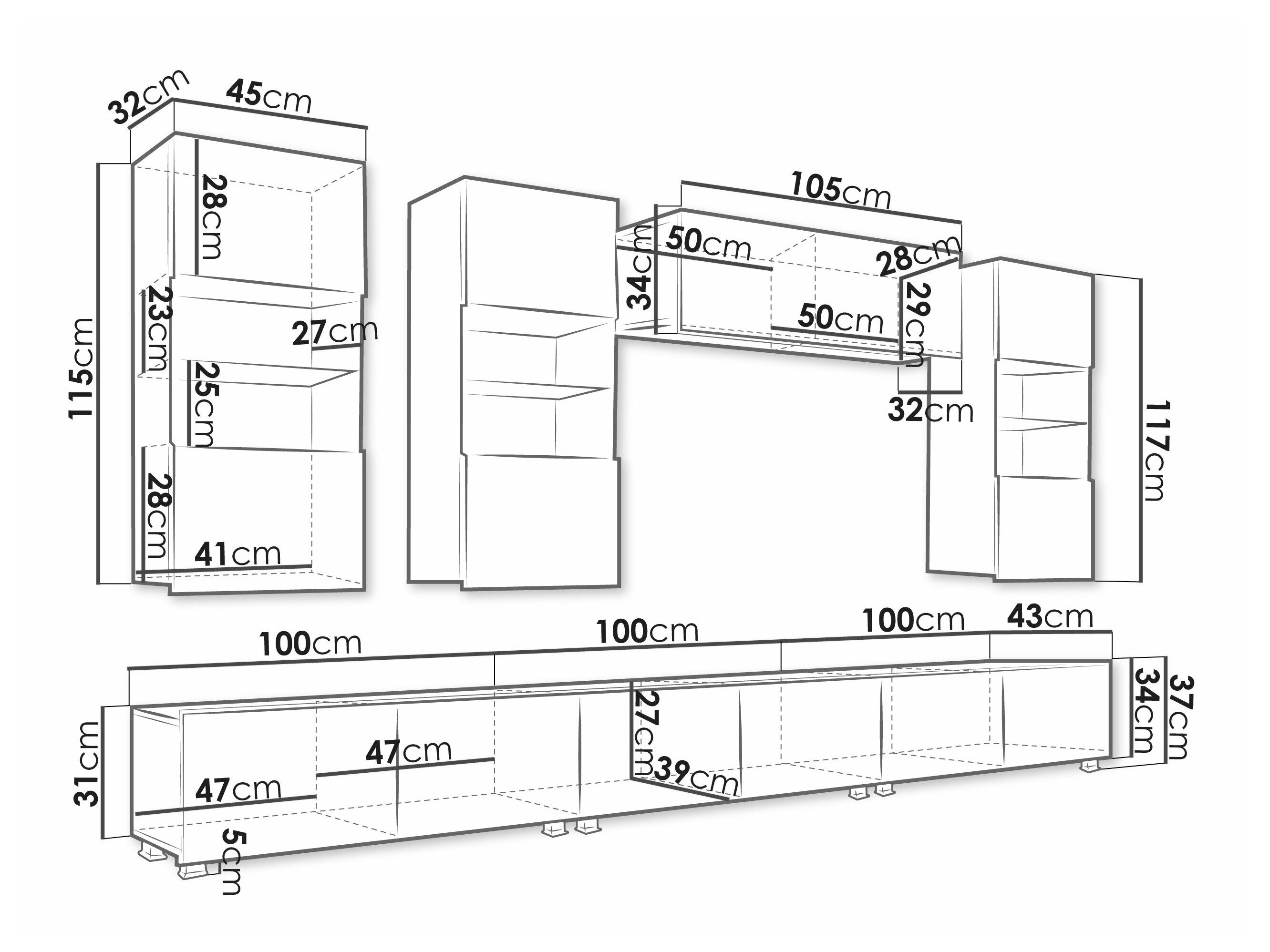 34 x 105 x 32 cm