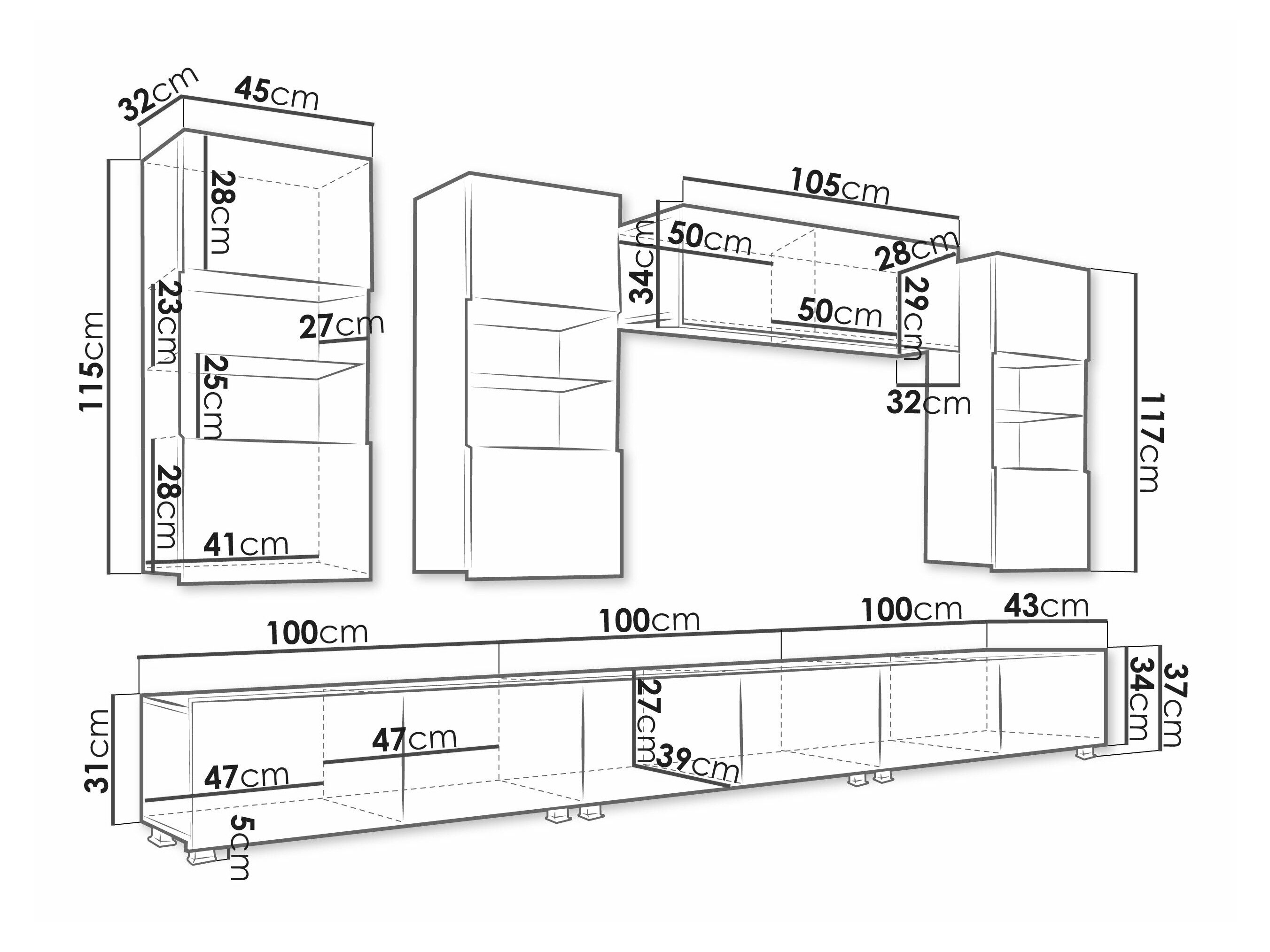 117 cm  45 cm  32 cm