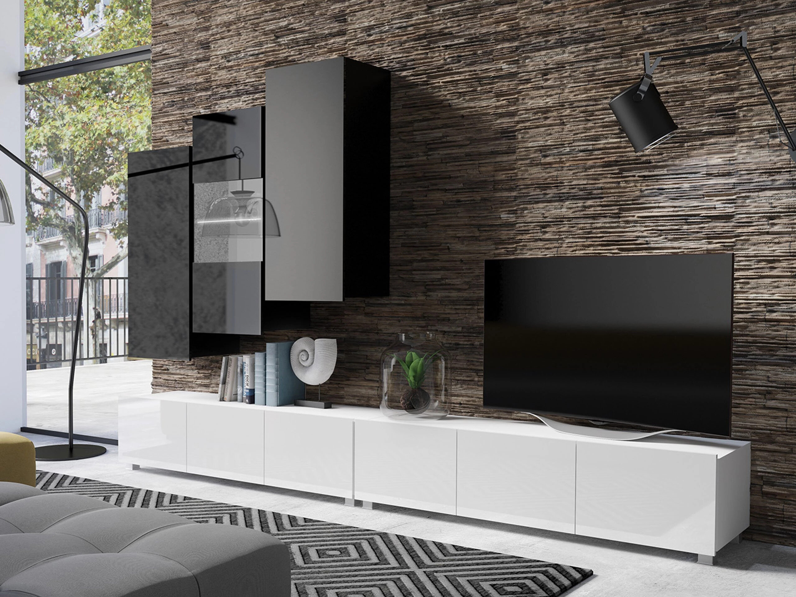 Stuemøbelsæt Remus XVII (Hvid + Glansfuld hvid + Sort + Blank sort)