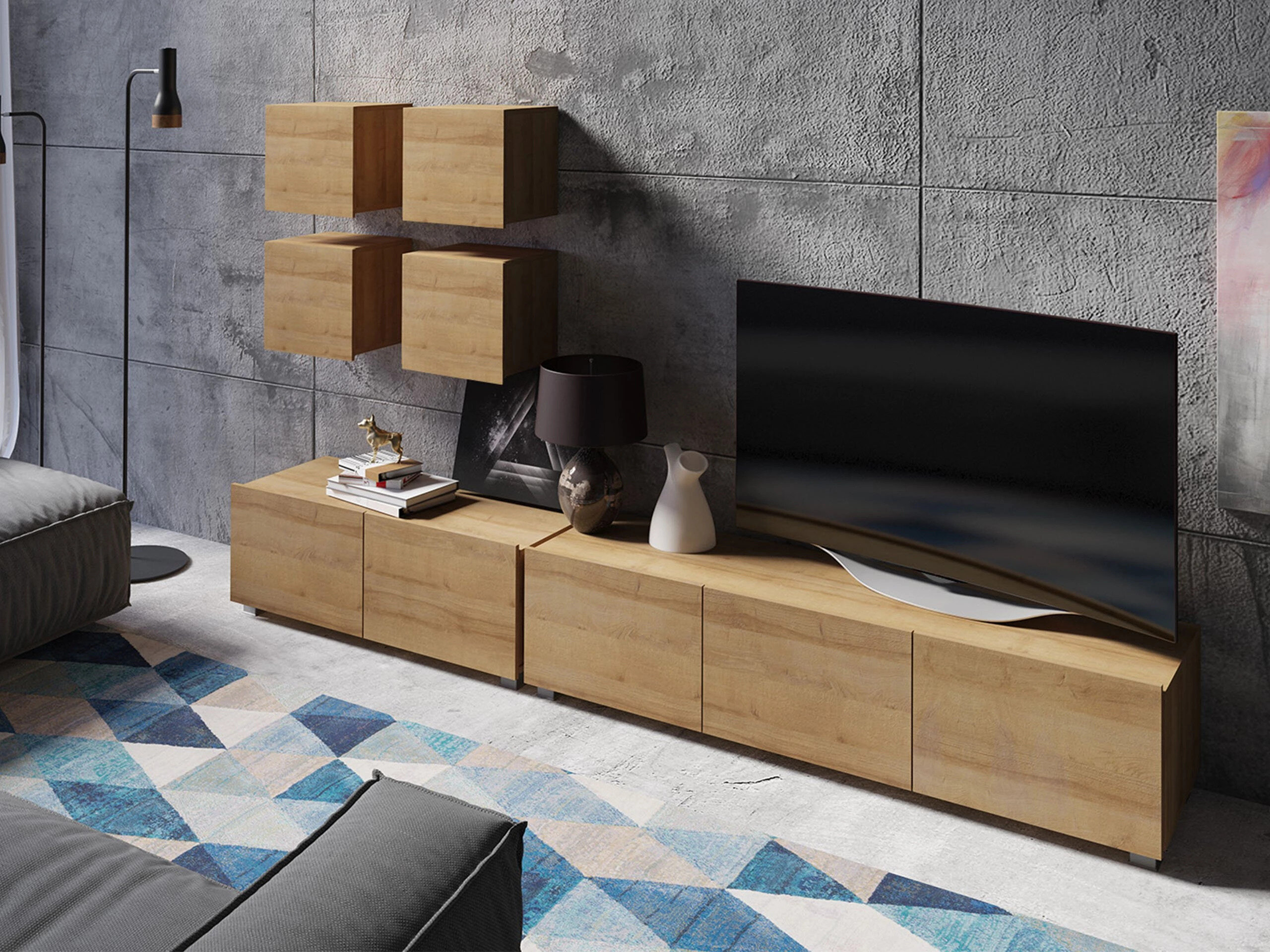 Denne møbelserie er designet til det moderne livs rytme, hvor funktionalitet og æstetik går hånd i hånd. Rene linjer, moderne former og subtile detaljer gør det nemt at skabe et hyggeligt, autentisk rum, som du vil nyde at komme hjem til. Kollektionen omfatter tv-møbler, stuesæt, vægmonterede skabe, senge og skriveborde – alt sammen omhyggeligt designet til at passe perfekt sammen. Disse møbler tilpasser sig nemt til forskellige interiører og tilbyder alsidige løsninger til kompakte rum eller danner dristige, markante kombinationer i større rum. Nogle modeller har integreret energieffektiv LED-belysning, der tilføjer varme og stemning om aftenen. Elementer af hærdet glas forbedrer både holdbarhed og design og giver et raffineret præg af karakter. Denne kollektion passer nemt ind i en række forskellige interiører og er med til at skabe et indbydende og stilfuldt opholdsrum – et sted at samles, holde pause og bare nyde at være.