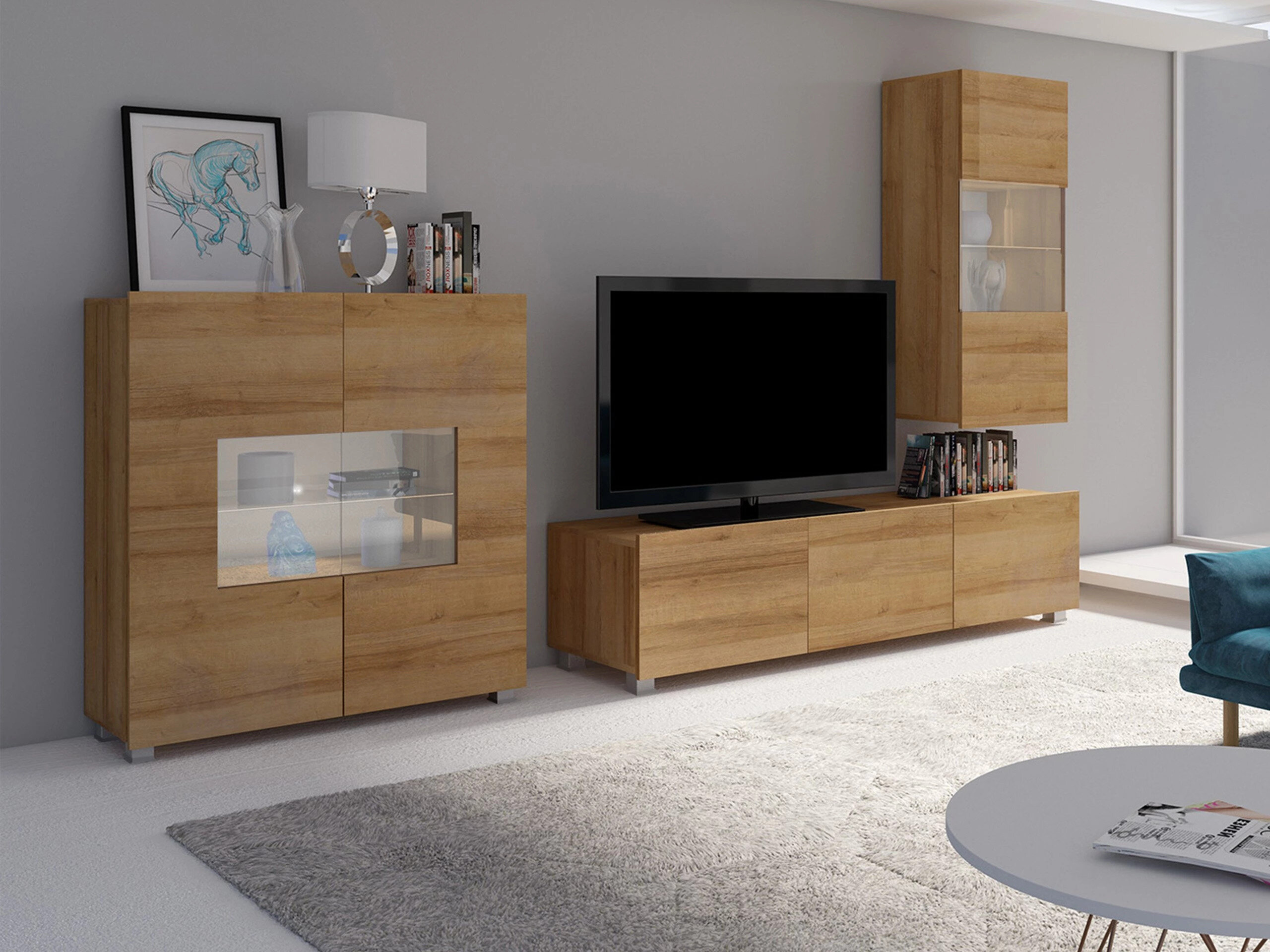 Denne møbelserie er designet til det moderne livs rytme, hvor funktionalitet og æstetik går hånd i hånd. Rene linjer, moderne former og subtile detaljer gør det nemt at skabe et hyggeligt, autentisk rum, som du vil nyde at komme hjem til. Kollektionen omfatter tv-møbler, stuesæt, vægmonterede skabe, senge og skriveborde – alt sammen omhyggeligt designet til at passe perfekt sammen. Disse møbler tilpasser sig nemt til forskellige interiører og tilbyder alsidige løsninger til kompakte rum eller danner dristige, markante kombinationer i større rum. Nogle modeller har integreret energieffektiv LED-belysning, der tilføjer varme og stemning om aftenen. Elementer af hærdet glas forbedrer både holdbarhed og design og giver et raffineret præg af karakter. Denne kollektion passer nemt ind i en række forskellige interiører og er med til at skabe et indbydende og stilfuldt opholdsrum – et sted at samles, holde pause og bare nyde at være.
