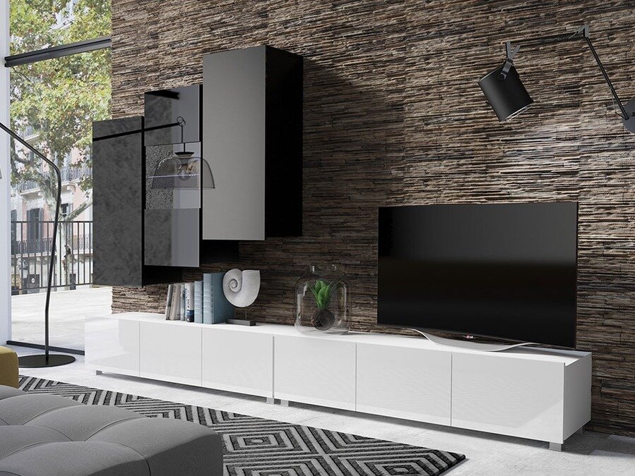 Stuemøbelsæt Tivdalu 133 (Hvid + Glansfuld hvid + Sort + Blank sort)
