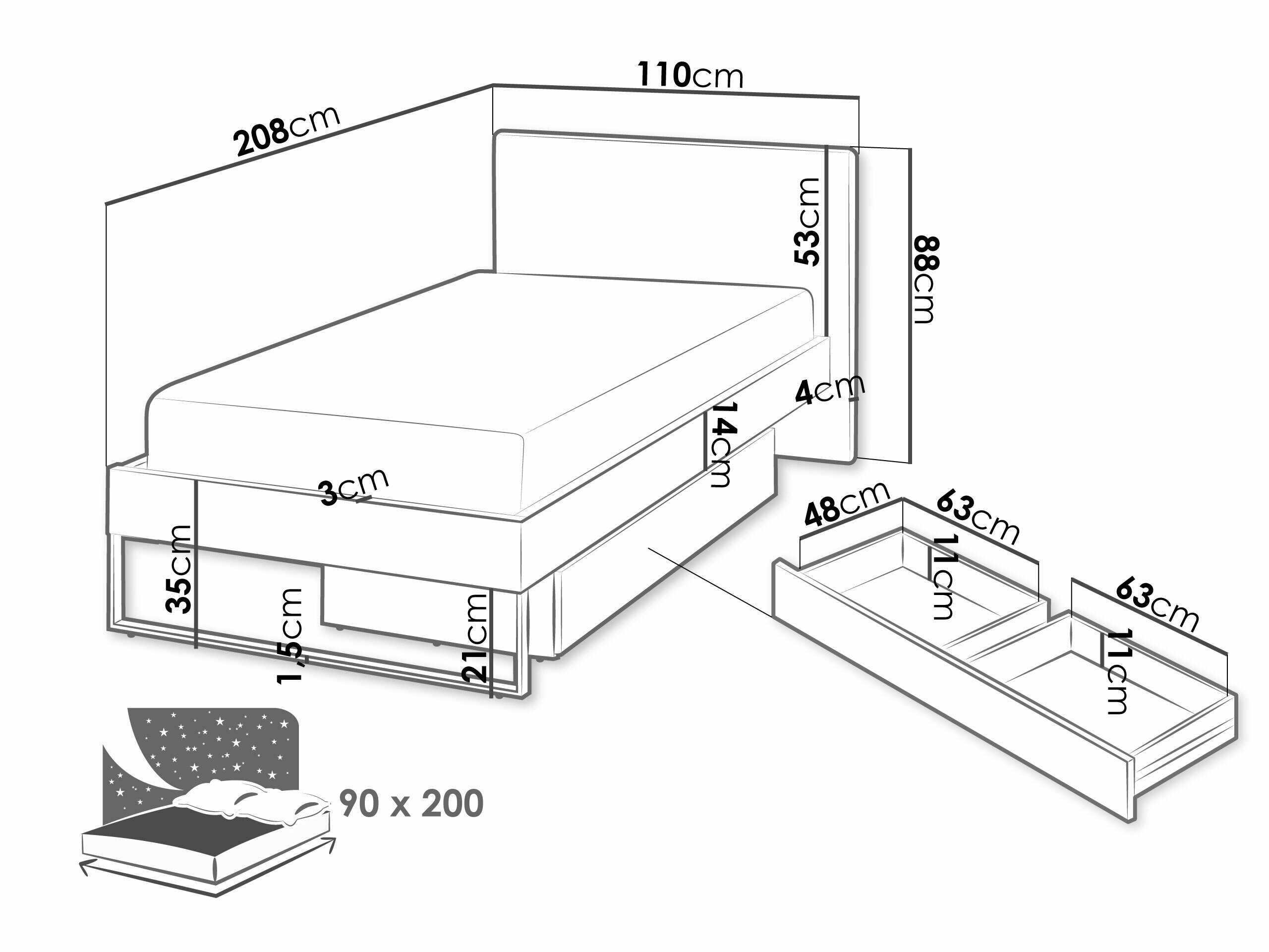 - 90 x 200 cm