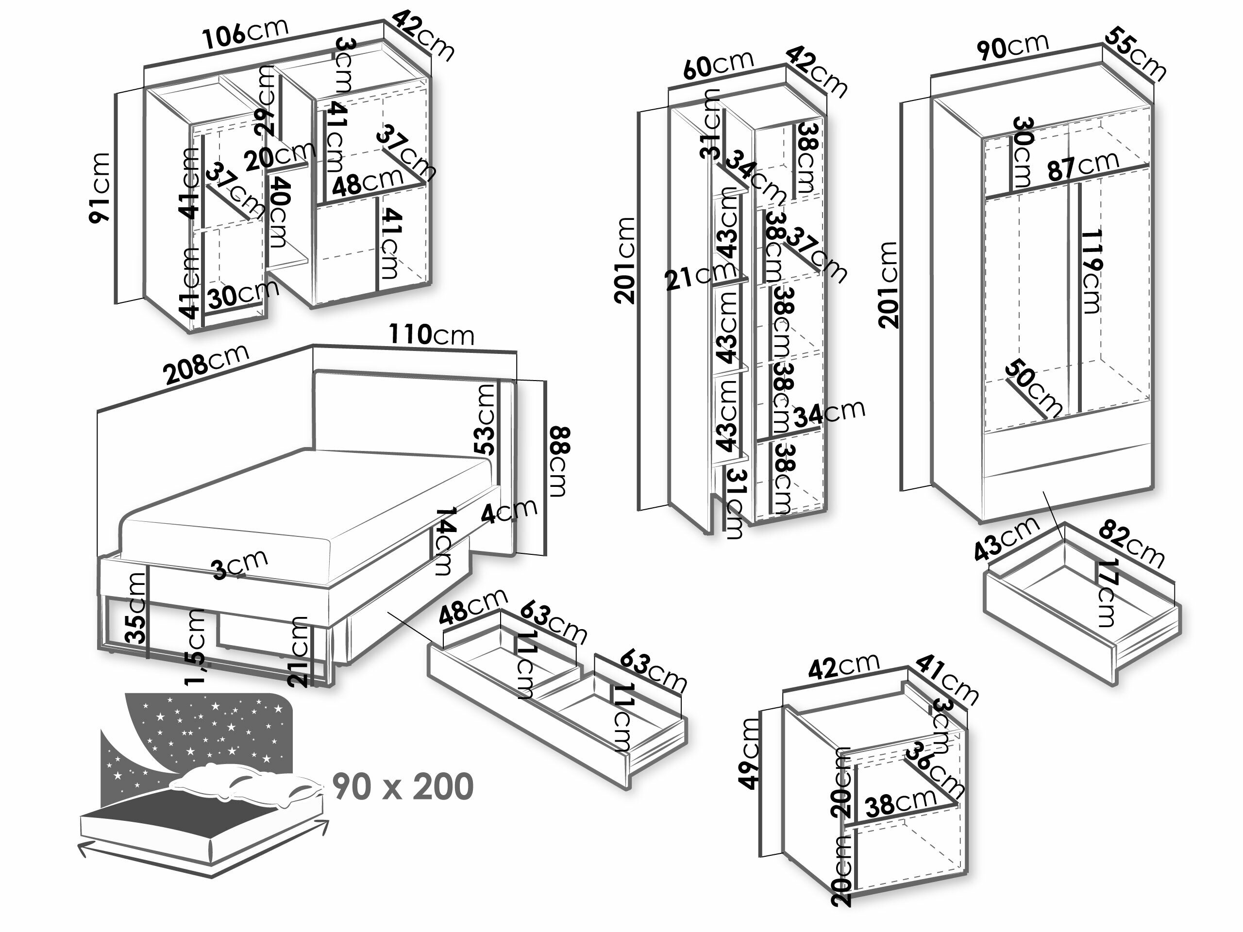 - 90 x 200 cm