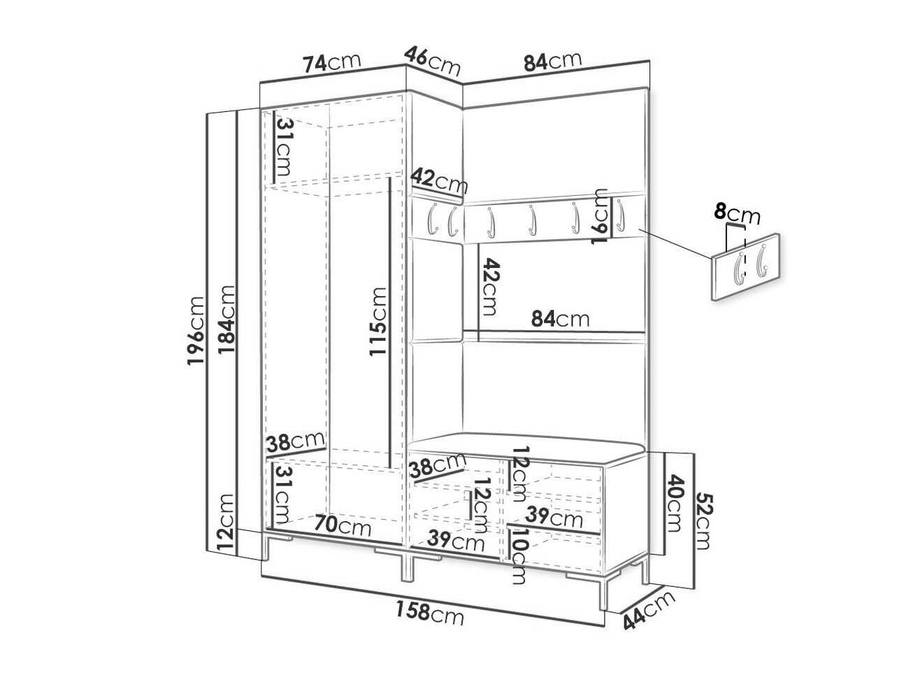 Dimensioner på garderobeskabe: