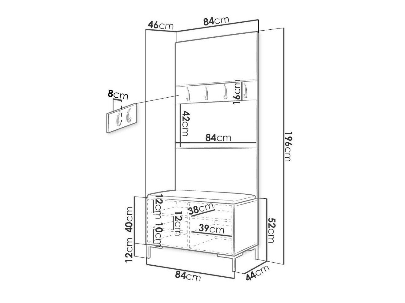 16 x 84 x 8 cm