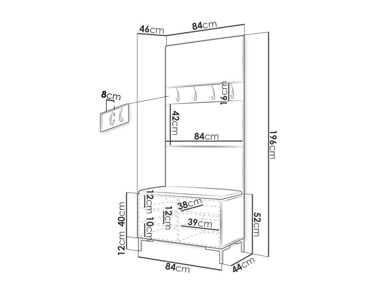 16 x 84 x 8 cm