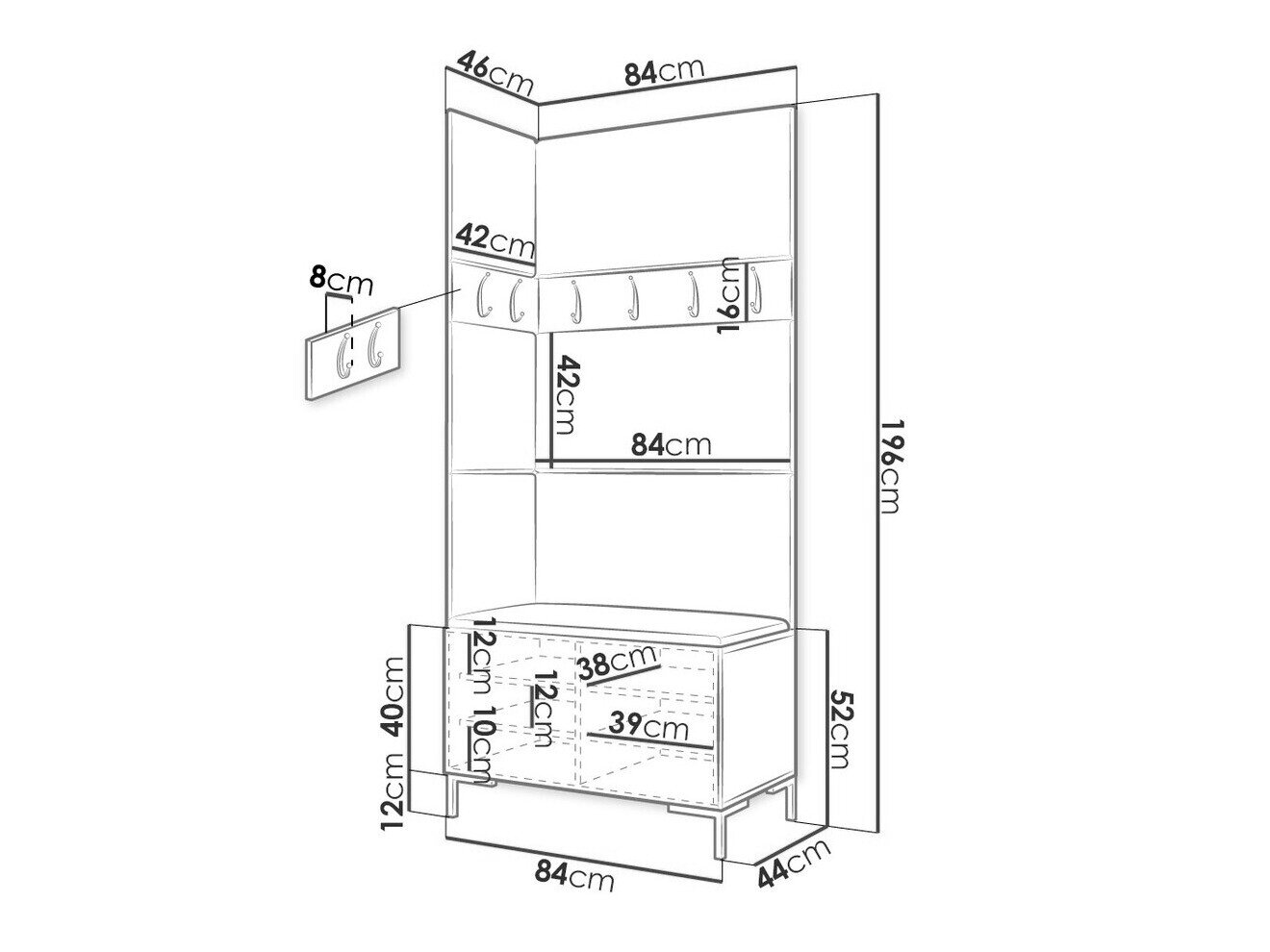 16 x 84 x 8; 16 x 42 x 8 cm