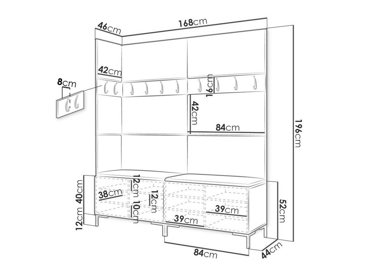 16 x 84 x 8; 16 x 42 x 8 cm