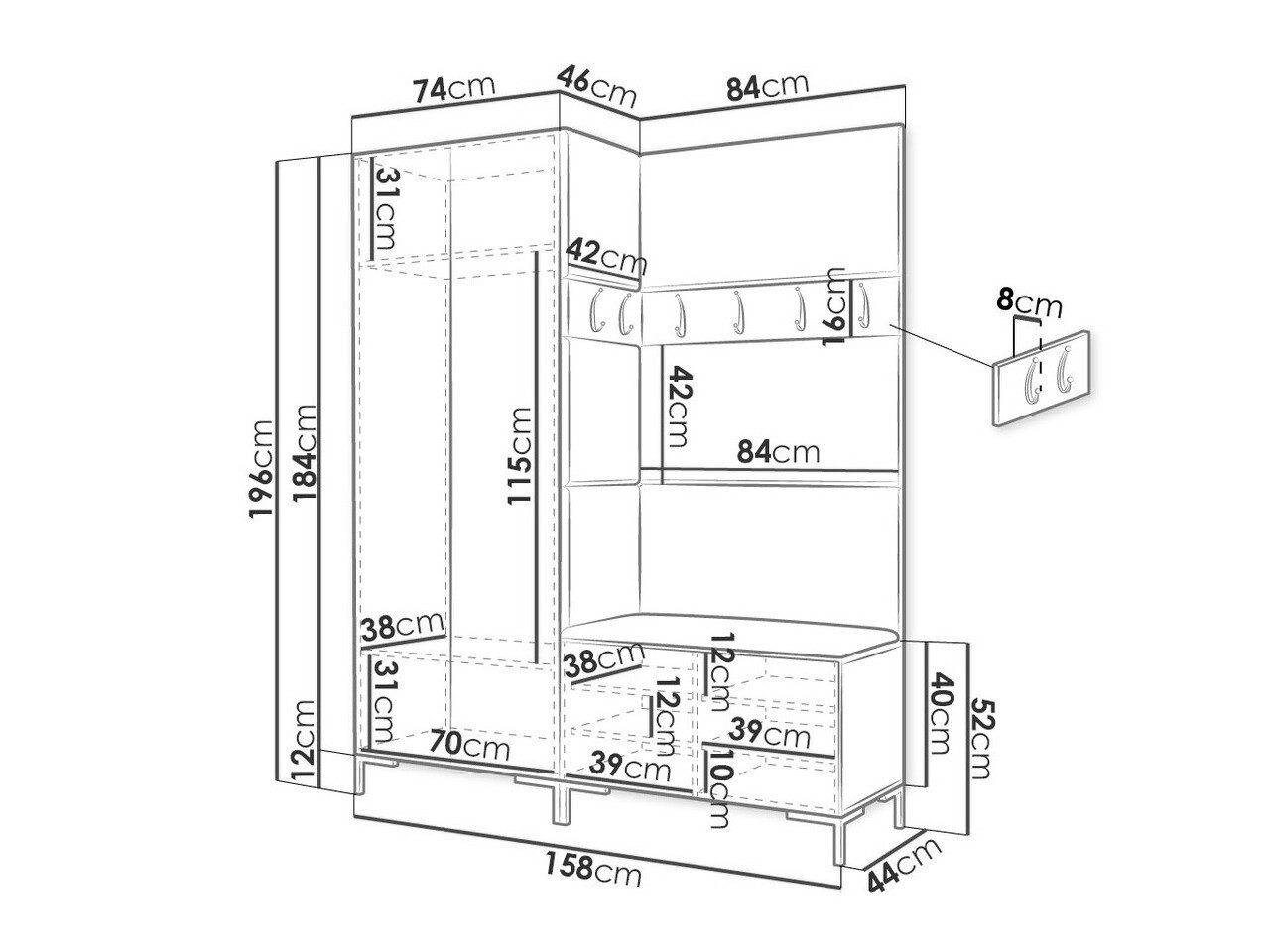 Dimensioner på garderobeskabe: