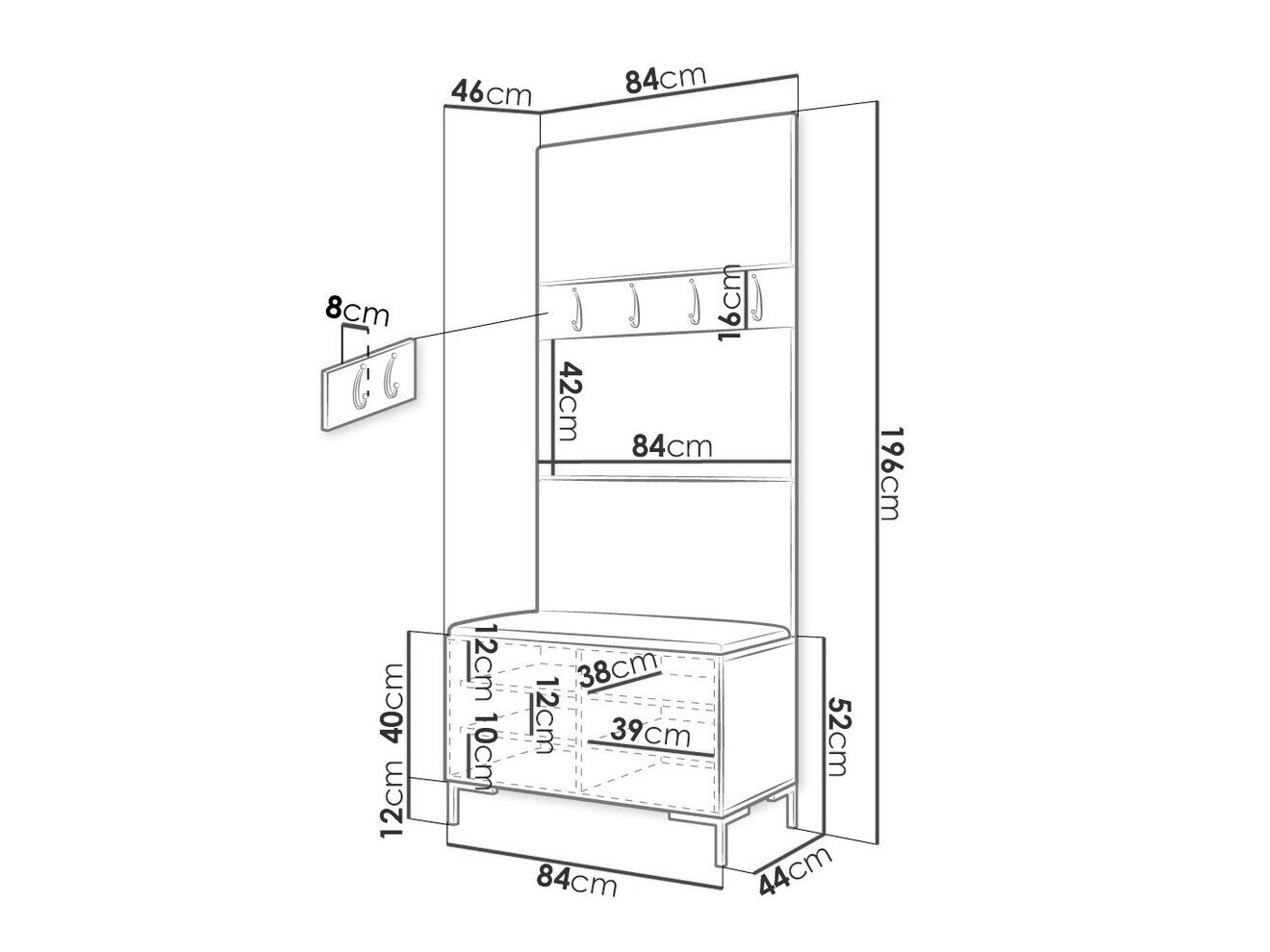 16 x 84 x 8 cm