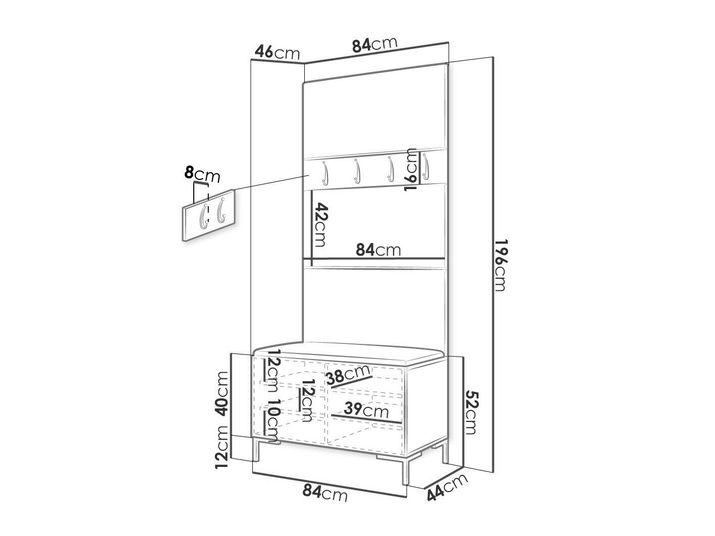 16 x 84 x 8 cm