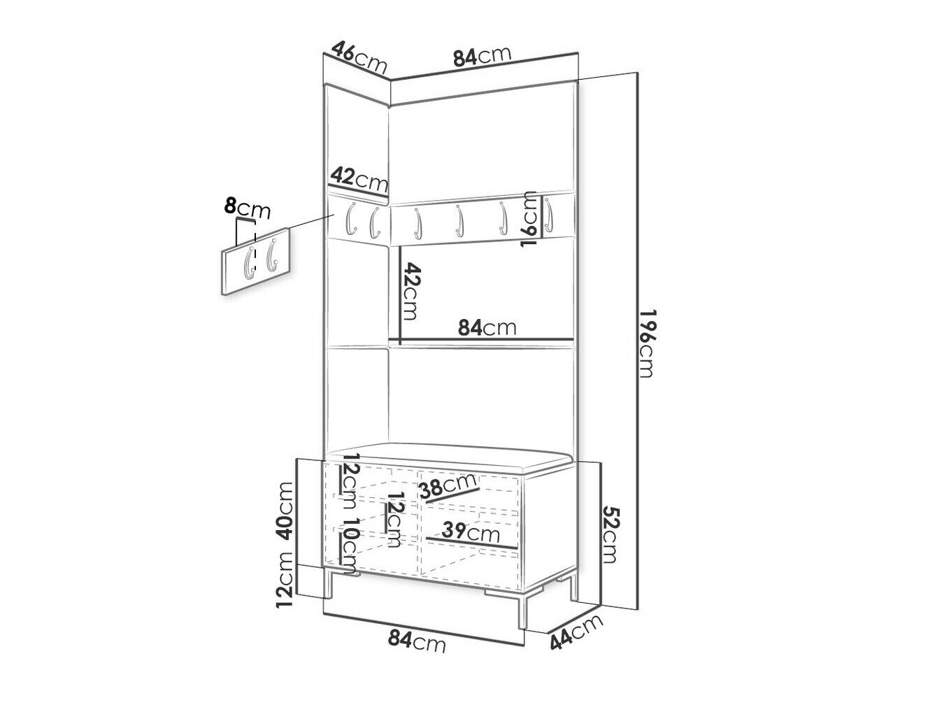 16 x 84 x 8; 16 x 42 x 8 cm