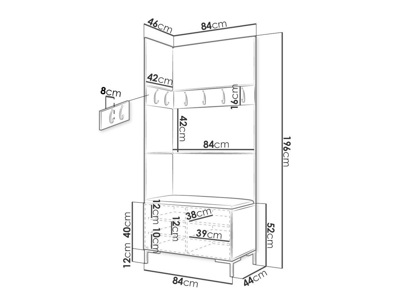 16 x 84 x 8; 16 x 42 x 8 cm