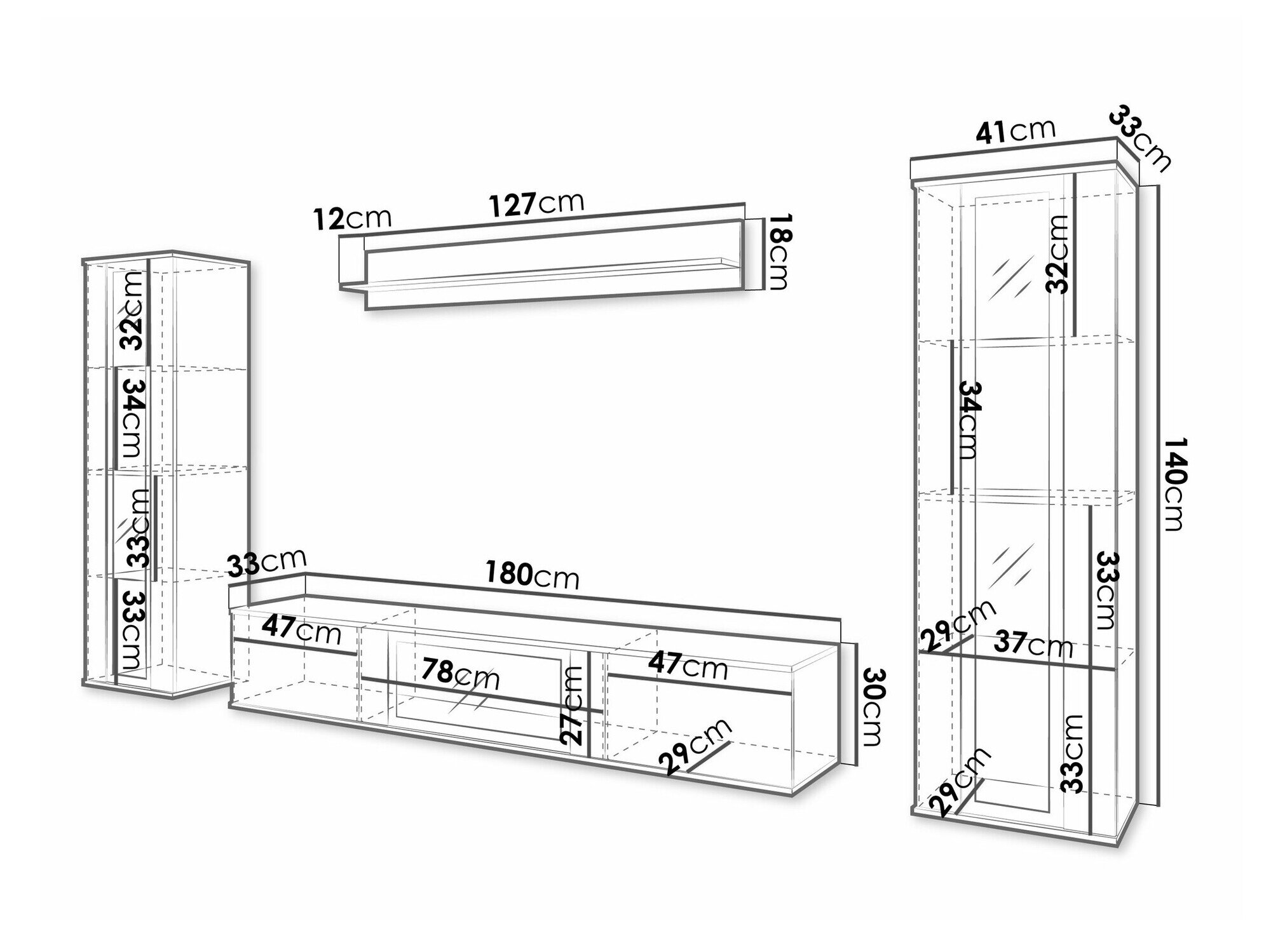 30 x 180 x 33 cm