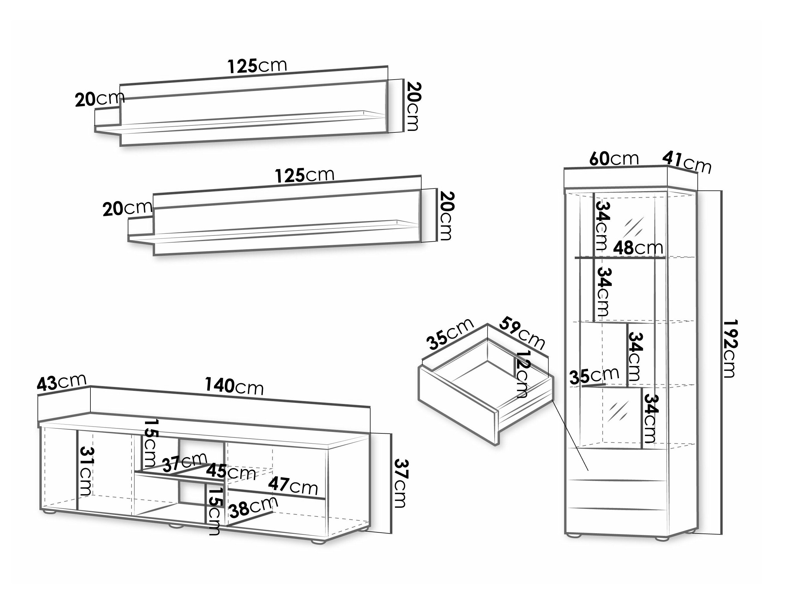 37 x 140 x 43 cm