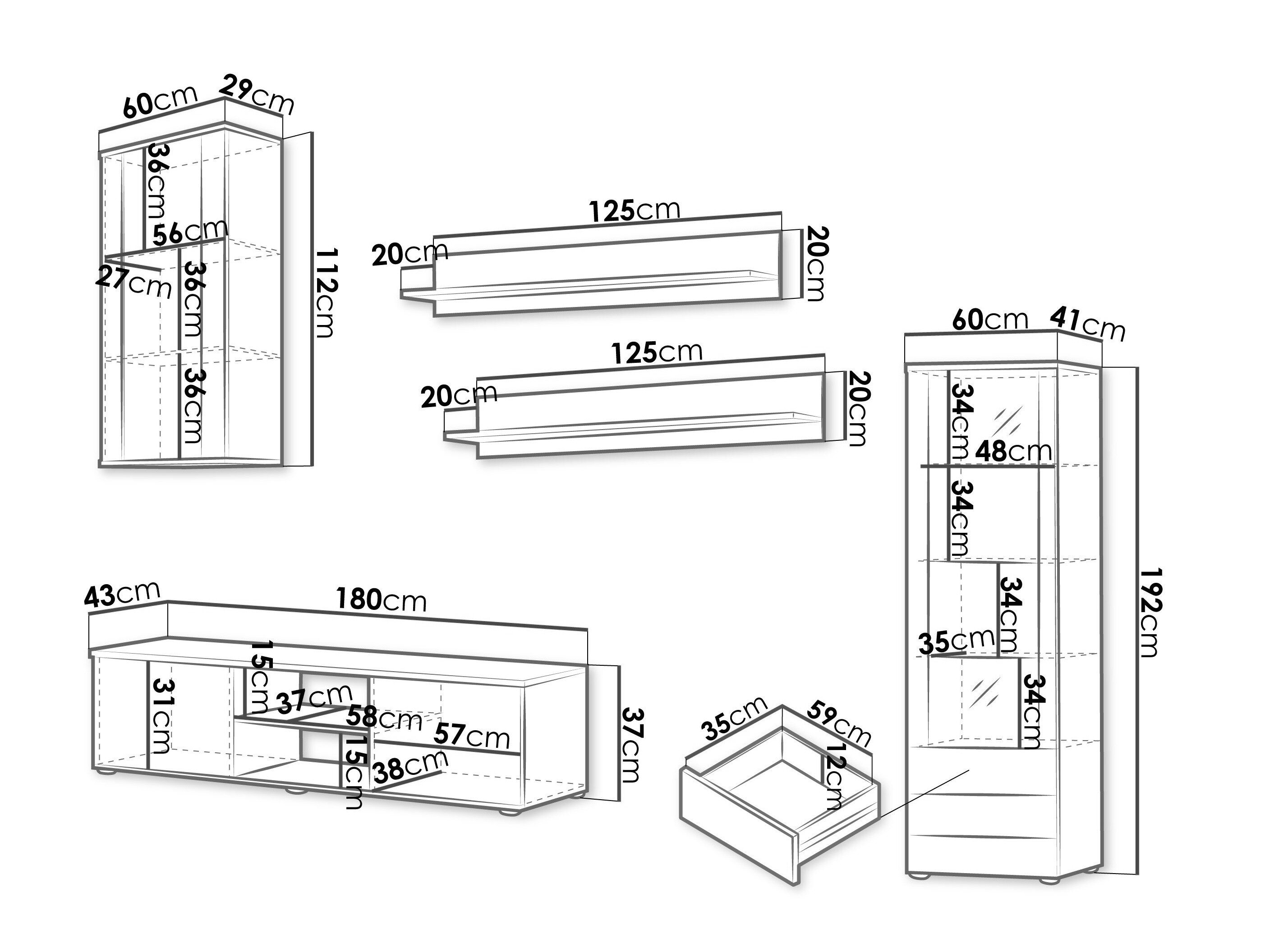 37 x 180 x 43 cm