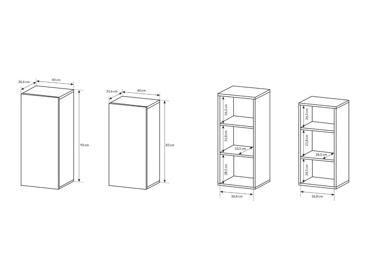 93 x 40 x 36.6; 83 x 40 x 31.6 cm