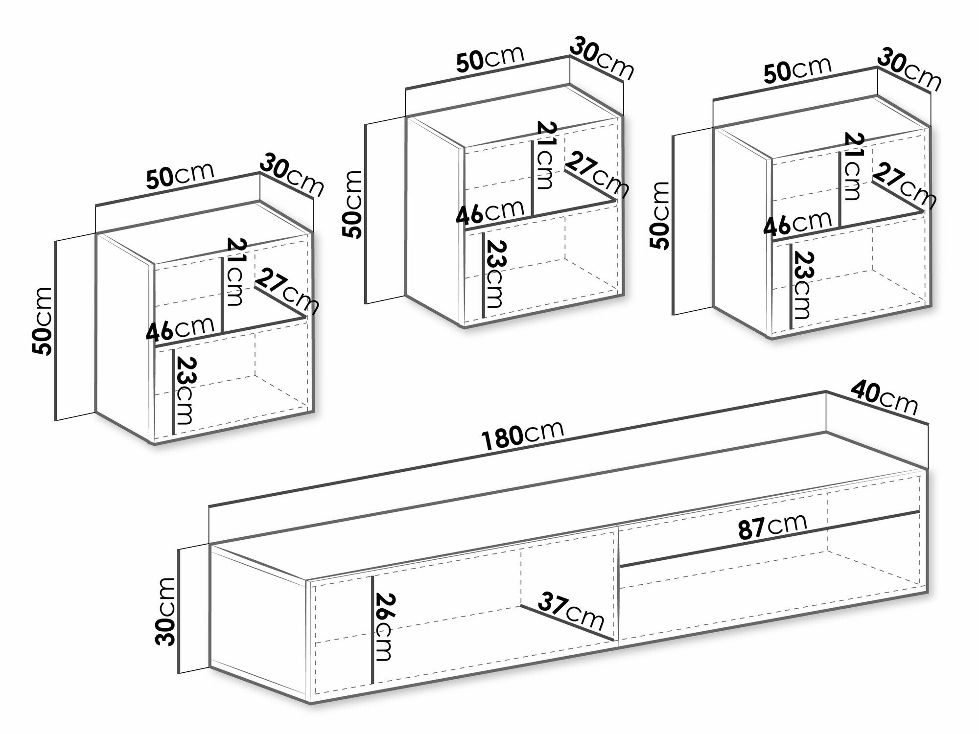 Denne moderne møbelkollektion skaber en harmonisk stueæstetik og forstærker samtidig rumfølelsen. Minimalistiske former og funktionelle designvalg er med til at skabe en behagelig og stilfuld indretning. Fra stueelementer til vægmonterede hylder er møblerne i denne kollektion designet til at passe sammen, så det er nemt at skabe praktiske løsninger til mindre rum eller mere dristige kombinationer i større rum. Nogle modeller har integreret energieffektiv LED-belysning, der tilføjer varme, mens elementer i hærdet glas bidrager til et raffineret, let look. En one-touch-åbningsmekanisme på lågerne bevarer møblernes rene, minimalistiske silhuet. Denne alsidige kollektion tilpasser sig nemt til en række forskellige indretningsstilarter og er med til at skabe et moderne og indbydende opholdsrum.