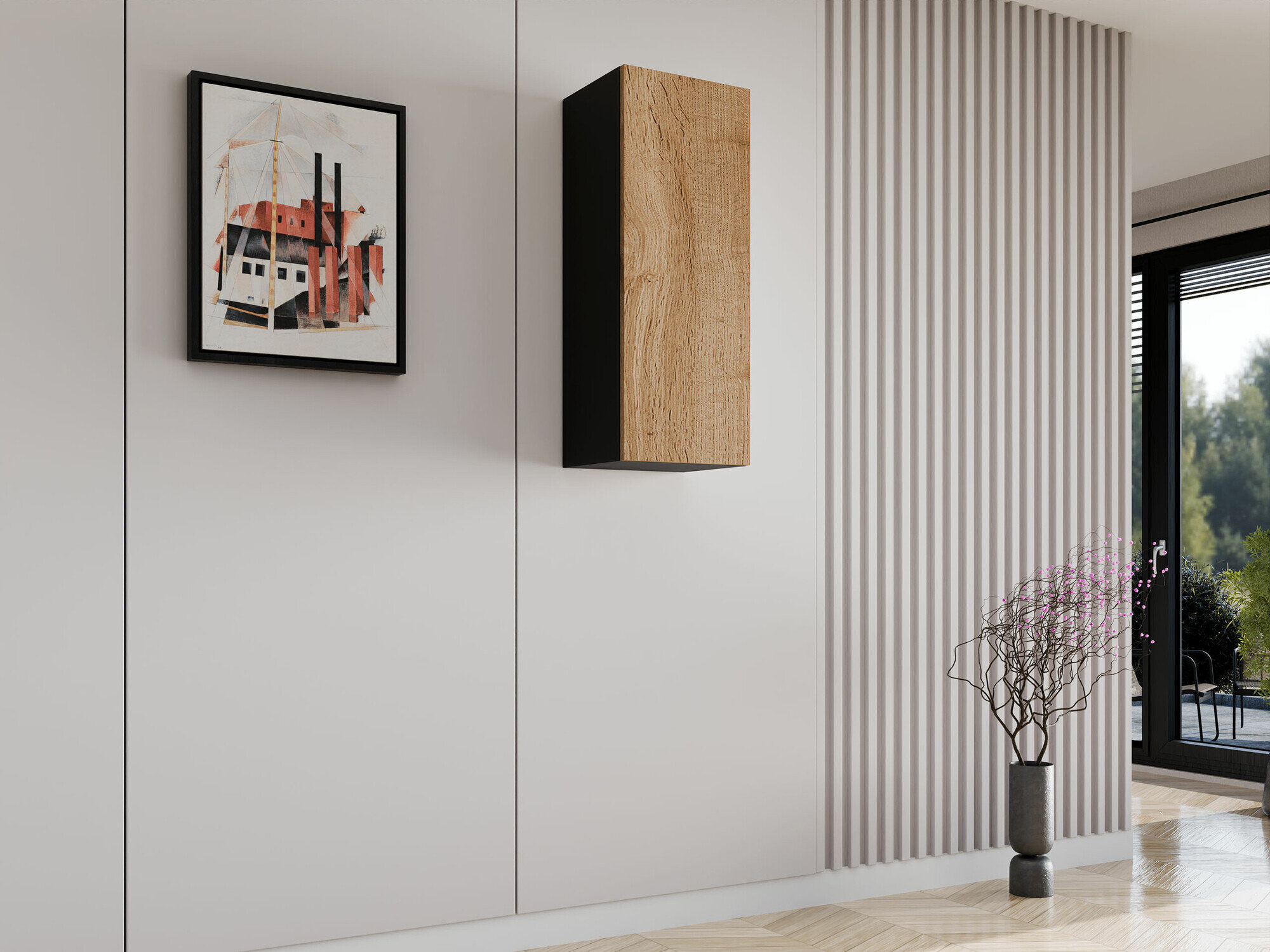 Denne moderne møbelkollektion skaber en harmonisk stueæstetik og forstærker samtidig rumfølelsen. Minimalistiske former og funktionelle designvalg er med til at skabe en behagelig og stilfuld indretning. Fra stueelementer til vægmonterede hylder er møblerne i denne kollektion designet til at passe sammen, så det er nemt at skabe praktiske løsninger til mindre rum eller mere dristige kombinationer i større rum. Nogle modeller har integreret energieffektiv LED-belysning, der tilføjer varme, mens elementer i hærdet glas bidrager til et raffineret, let look. En one-touch-åbningsmekanisme på lågerne bevarer møblernes rene, minimalistiske silhuet. Denne alsidige kollektion tilpasser sig nemt til en række forskellige indretningsstilarter og er med til at skabe et moderne og indbydende opholdsrum.