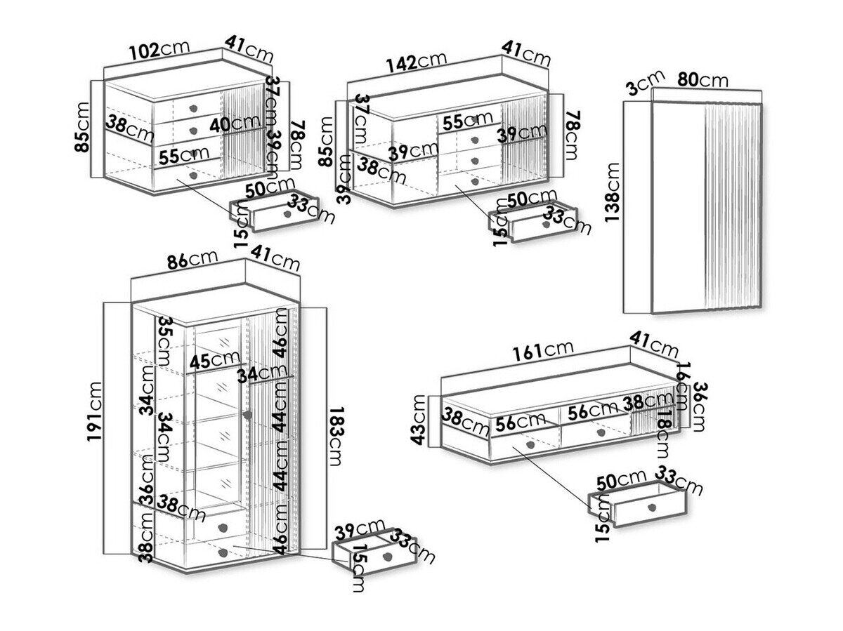 85 x 142 x 41; 85 x 102 x 41 cm