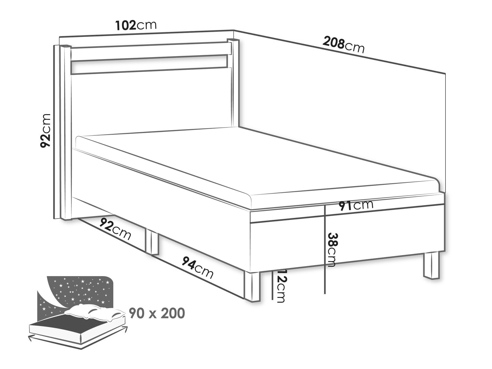 - 90 x 200 cm