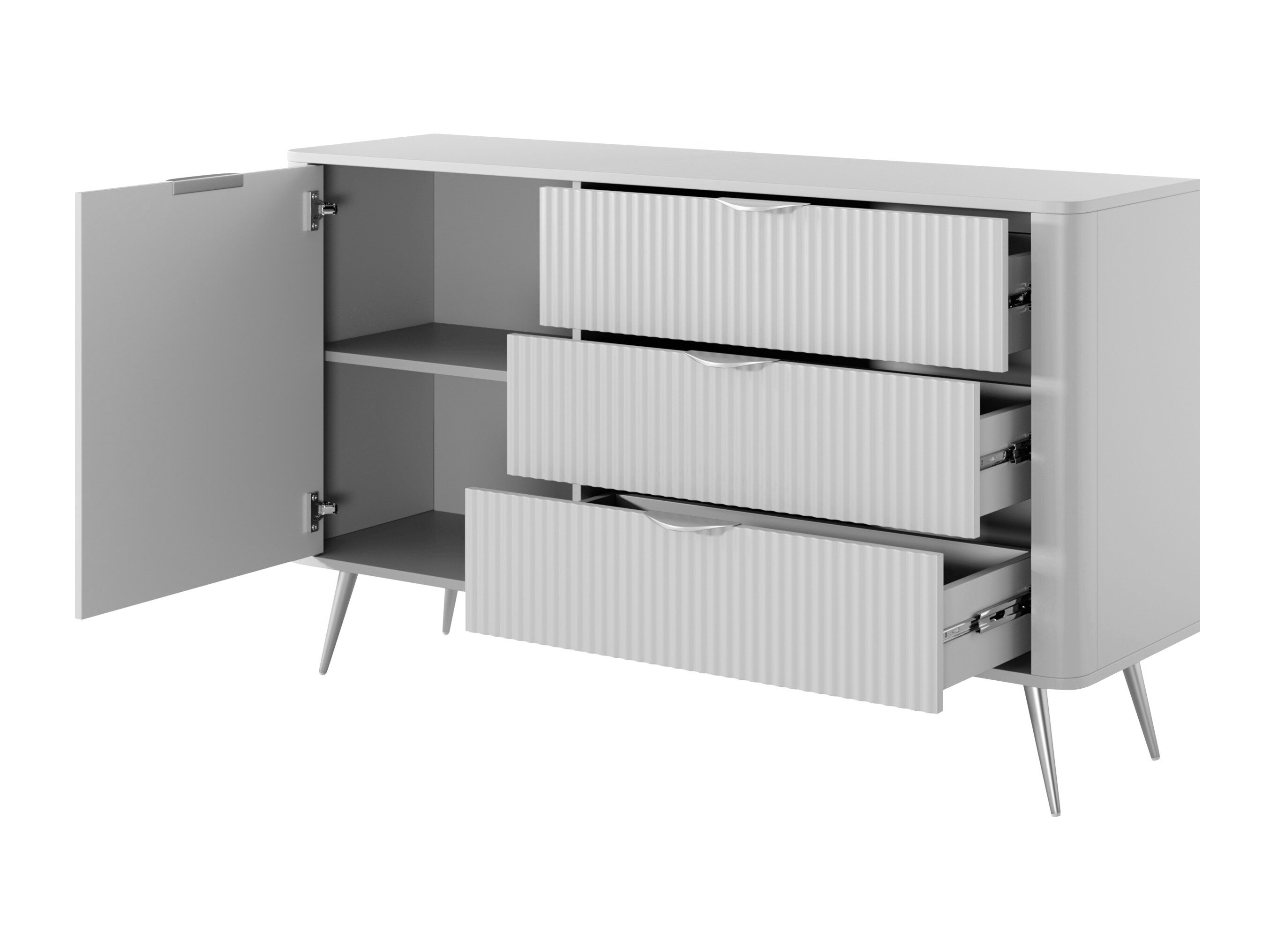 Når man indretter sit hjem, er der en stigende efterspørgsel efter møbler, der er funktionelle, nemme at kombinere med andre møbler og forbliver visuelt tiltalende i mange år fremover. Denne møbelkollektion er skabt med dette princip for øje. Subtile riller og lameldetaljer giver møblerne et karakteristisk udseende, samtidig med at det minimalistiske design passer perfekt ind i en række forskellige interiører. De høje metalben giver en visuel lethed og er perfekt egnet til hjem med robotstøvsugere – en praktisk løsning, der gør den daglige rengøring nemmere og hjælper med at opretholde et rent og organiseret rum. Takket være det unikke design passer denne kollektion smukt sammen med både moderne og moderne-klassiske interiører.