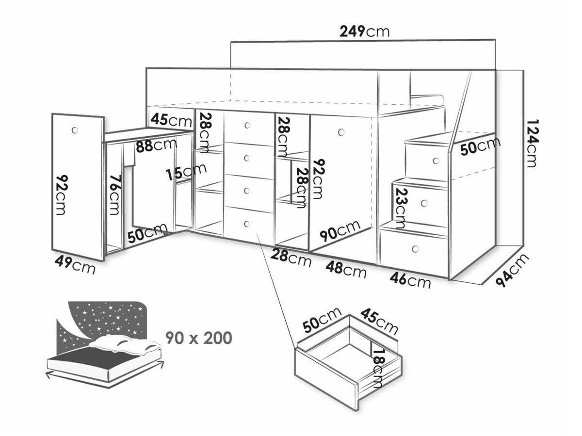 - 90 x 200 cm