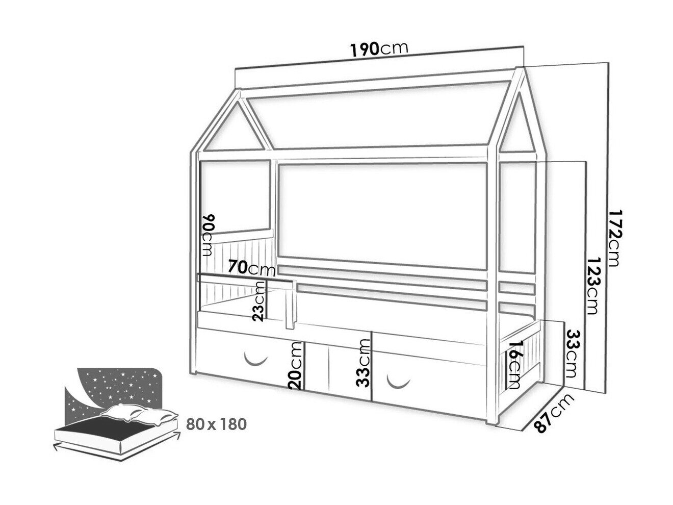 - 80 x 180 cm