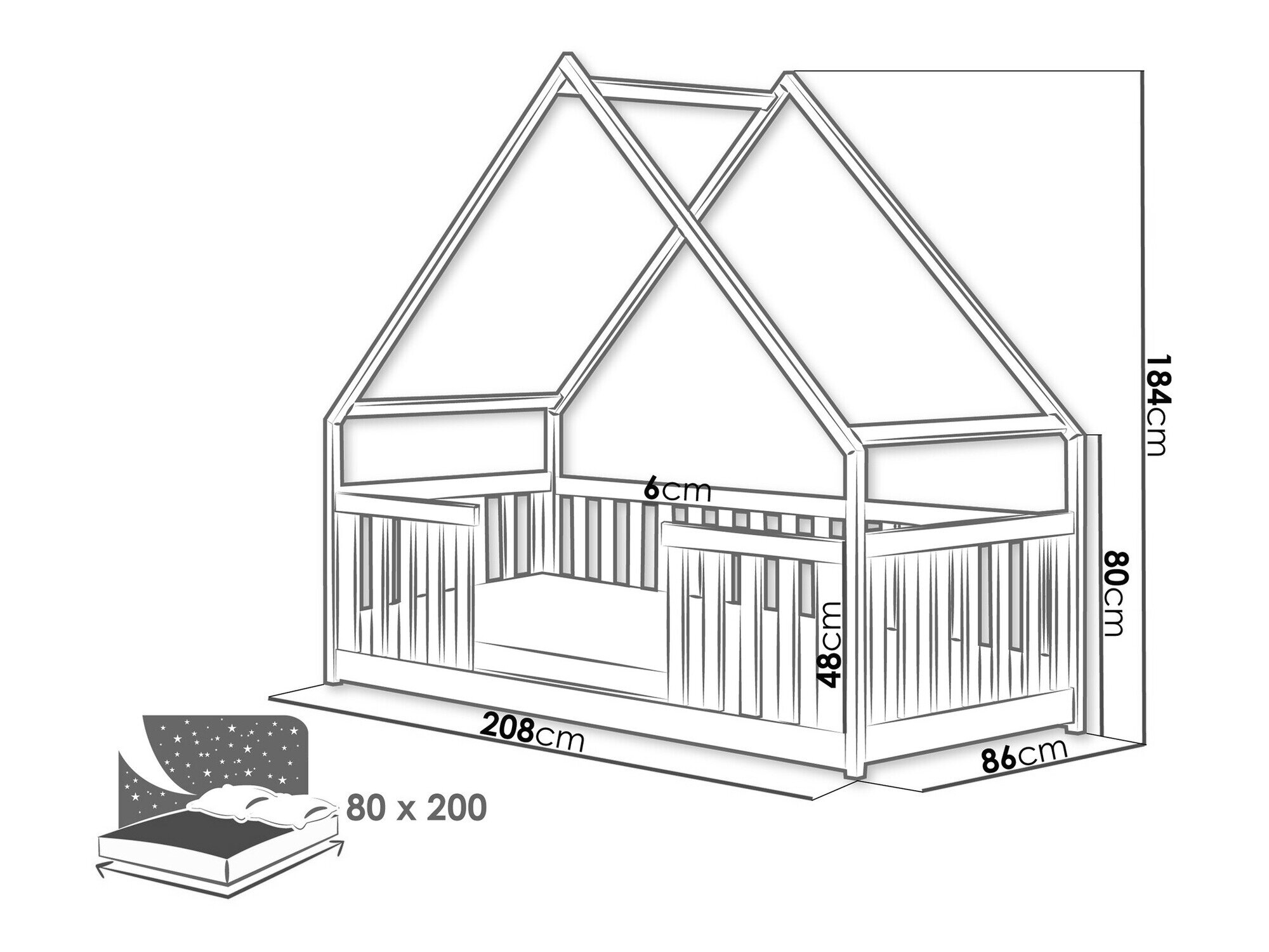 - 80 x 200 cm
