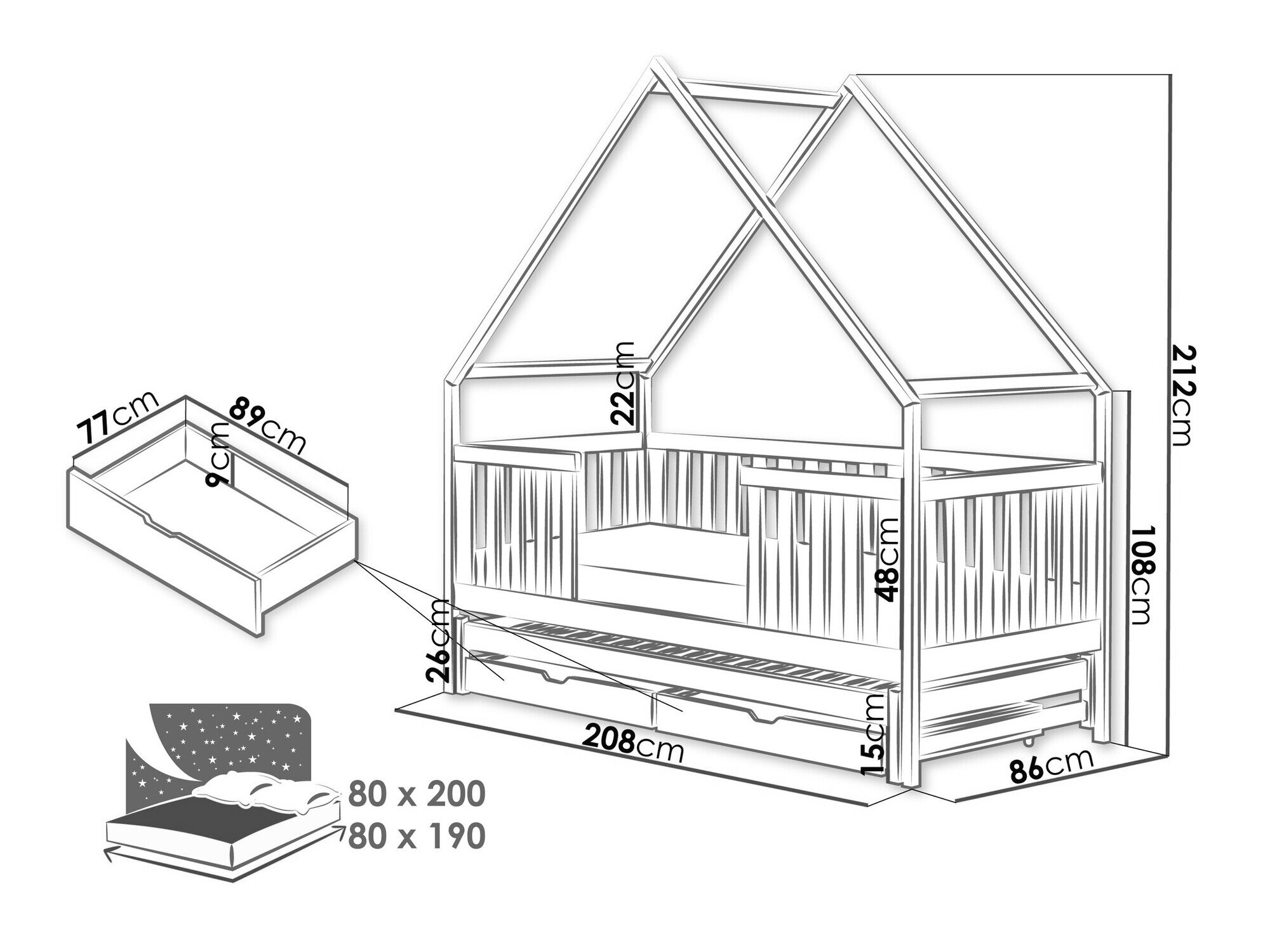 - 80 x 200 cm