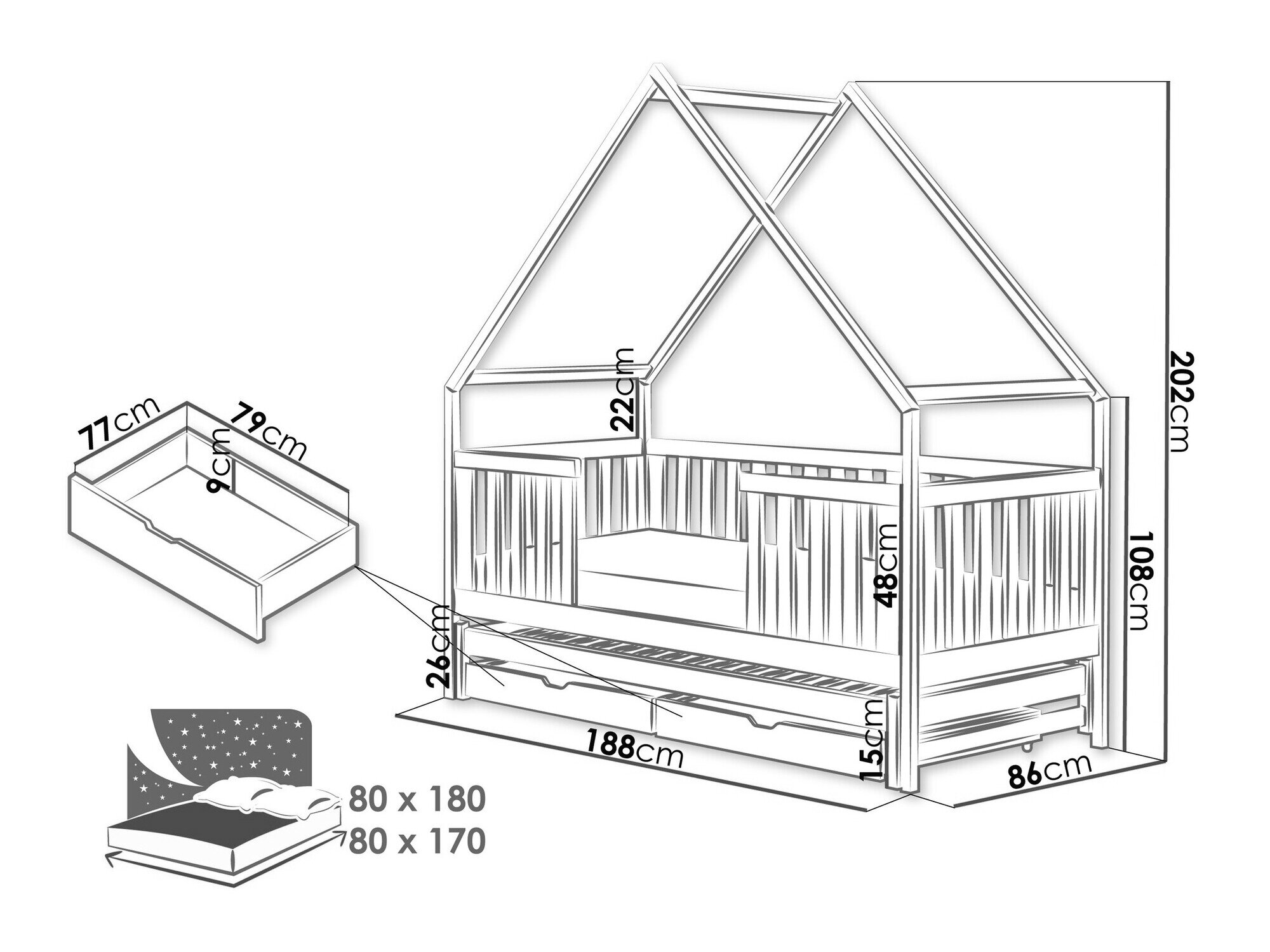 - 80 x 170 cm