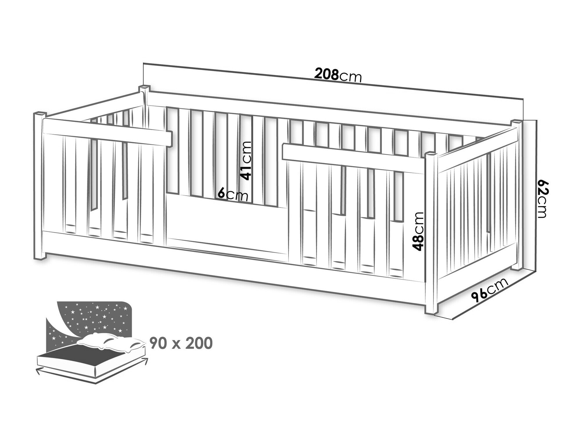 - 90 x 200 cm
