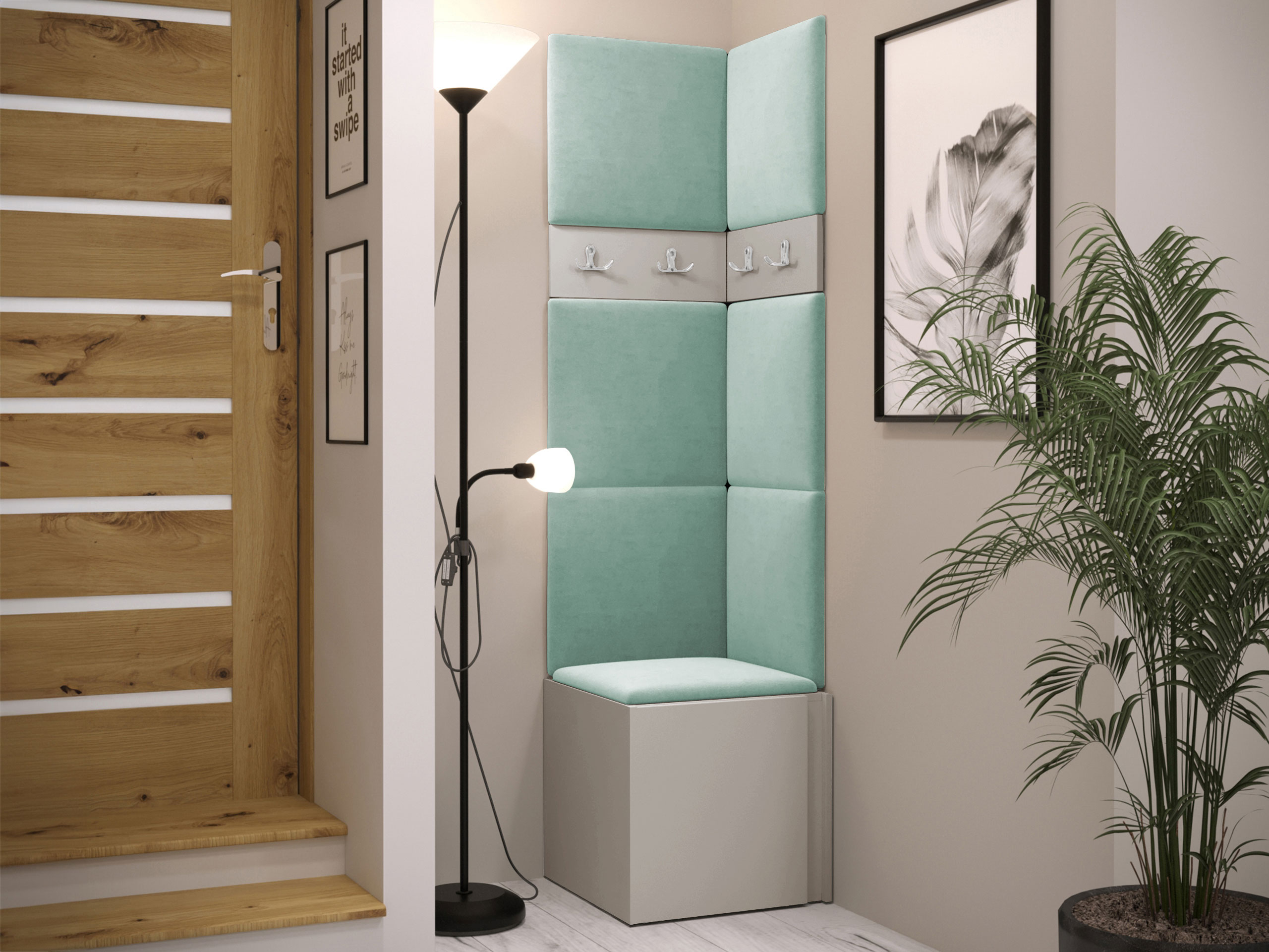 Blødt vægpanel, et elegant og funktionelt valg til dit hjem. Takket være den hævede overflade skaber panelet en unik 3D-effekt. Disse bløde paneler vil give mere hygge og komfort, og de vil desuden se ud som et dekorativt element. På grund af deres unikke egenskaber absorberer de lyd. Brug panelerne som en separat rumfunktion eller til at dække hele væggen. Panelet består af en 8 mm tyk plade, som gør det nemmere at montere på væggen. Blødheden og formen sikres af et 3 cm tykt syntetisk stof og det materiale, der dækker det. Du kan vælge et panelstof fra en bred vifte af farver, så du er sikker på at finde det, der passer bedst til din boligindretning.