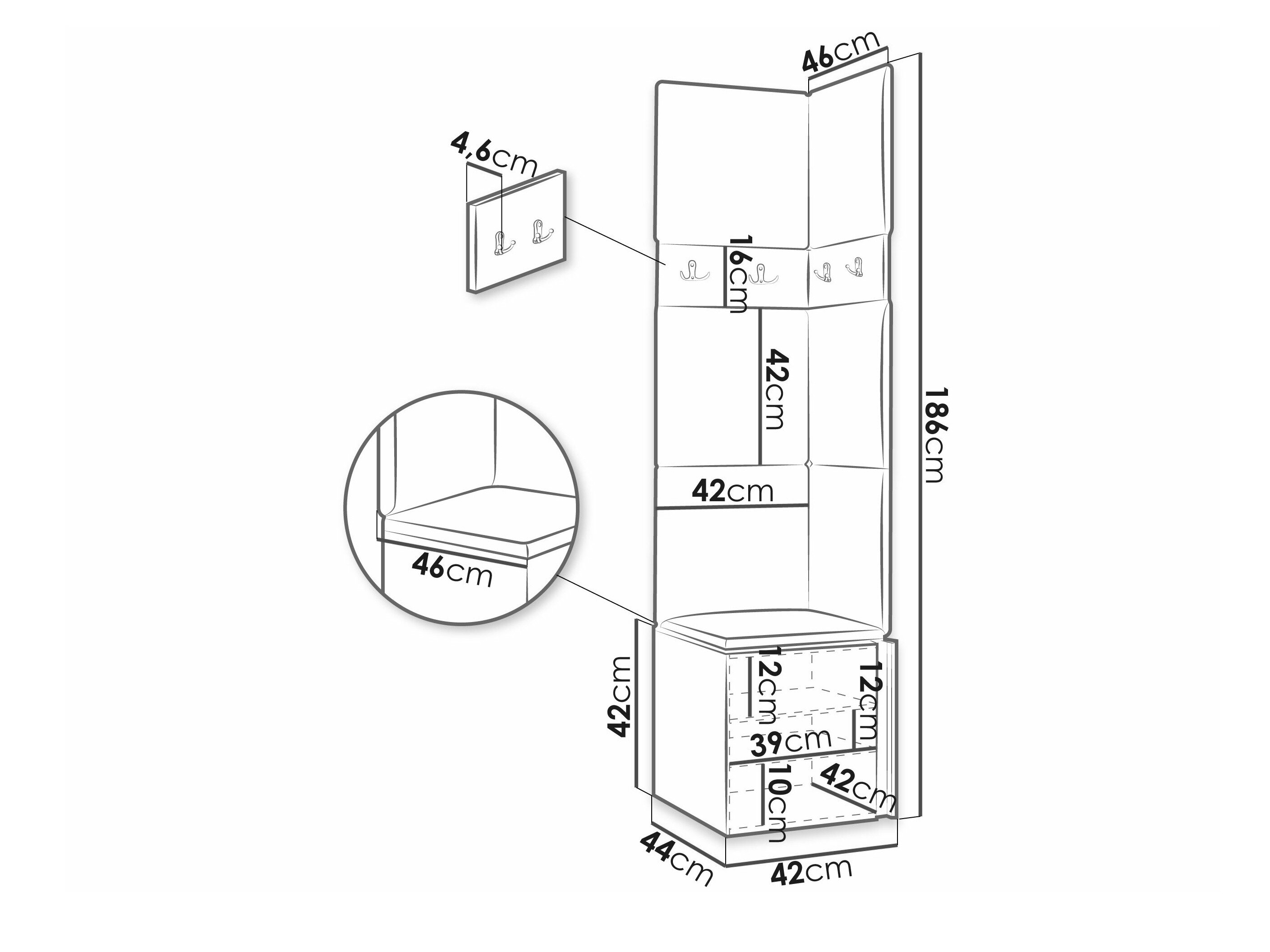 186 cm  42 cm  46 cm