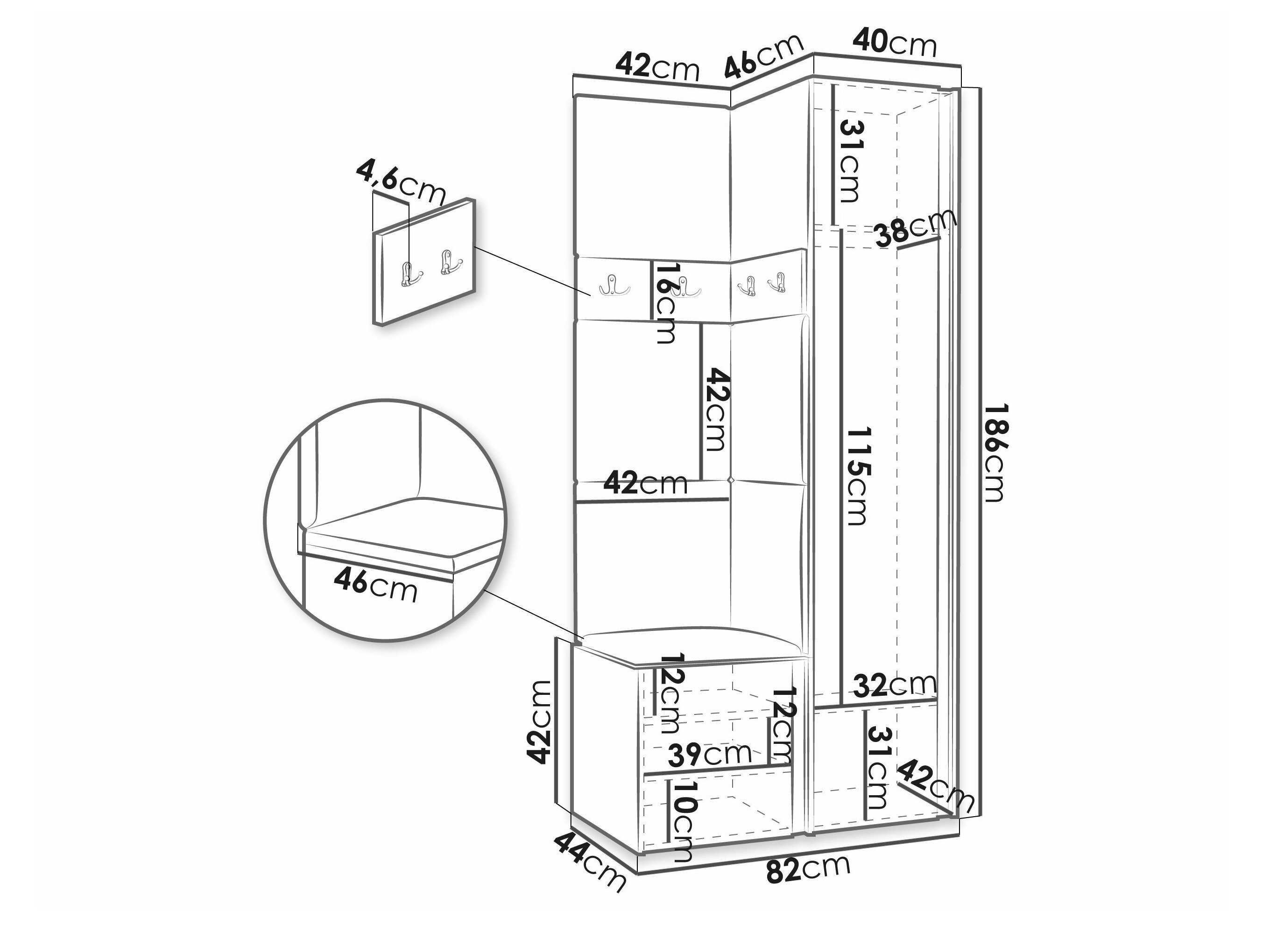 186 x 40 x 46 cm